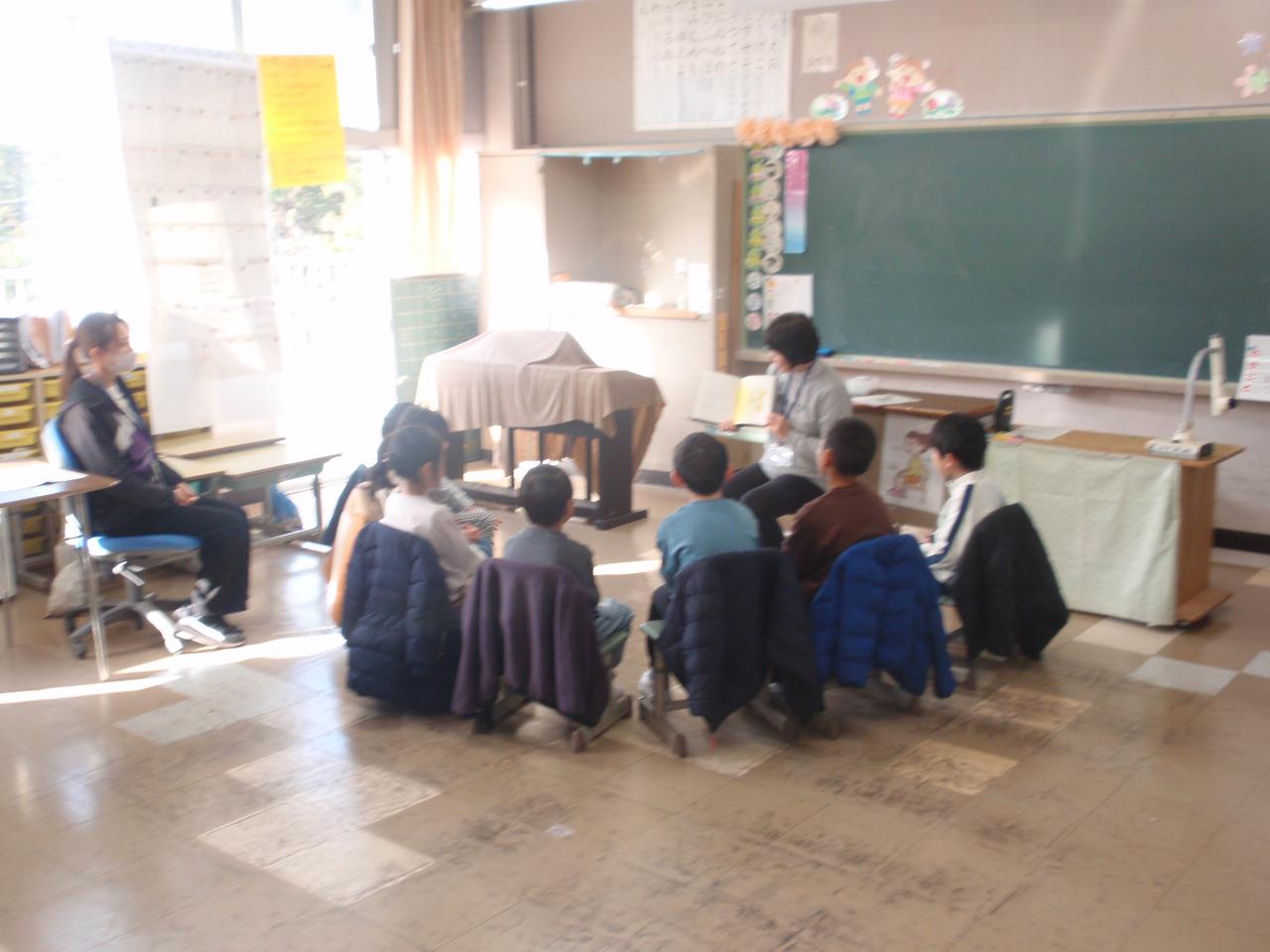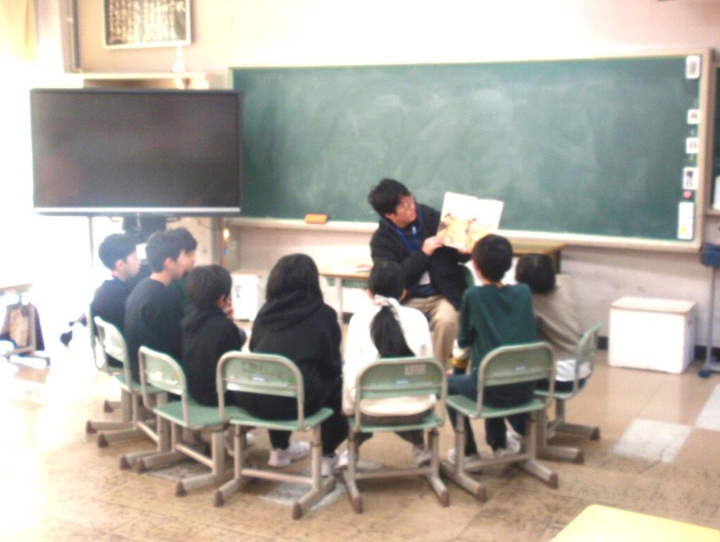 続いて2時間目から4時間目にかけては、「おはなしブリュッケン」の皆さんによるストーリーテリングが行われました。本を使わず、語り手の言葉だけで紡がれる物語の世界に、こどもたちはじっと耳を傾けていました。特に6年生は、最後にお話を聞かせていただき、卒業を前に心静かに物語の深みを味わう貴重なひとときとなりました。