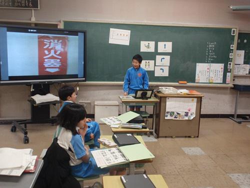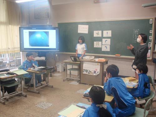 3月6日の外国語活動の時間、3・4年生が作成した「学校クイズ」の発表会を行いました。