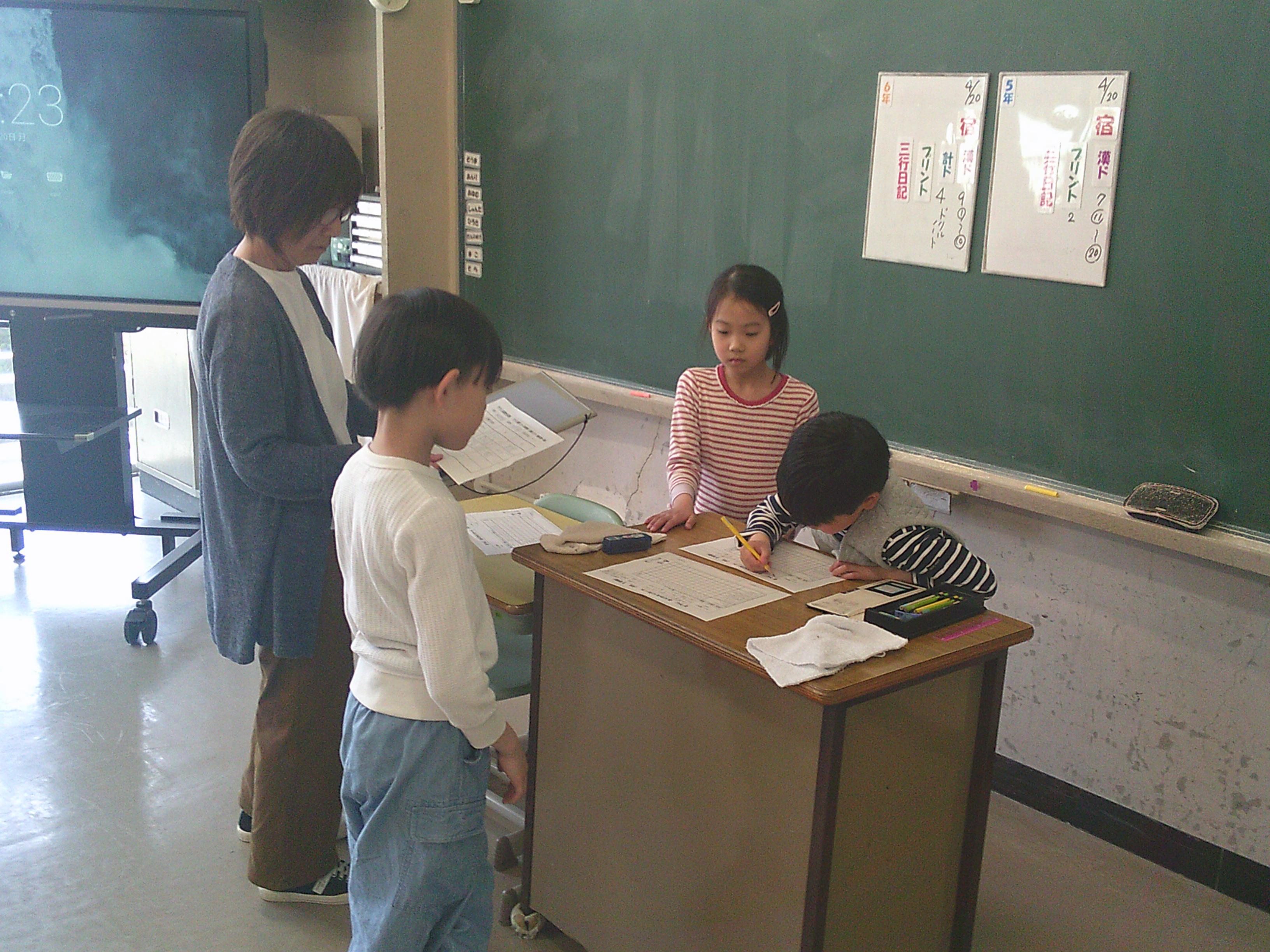 4月20日、新しい掃除場所での清掃活動がスタートしました。 全校児童18名という少ない人数ですが、こどもたちは担当場所での打ち合わせ後、「黙々と、テキパキと」掃除に取り組みました。その一生懸命な姿には、思わず感心させられるほどです。