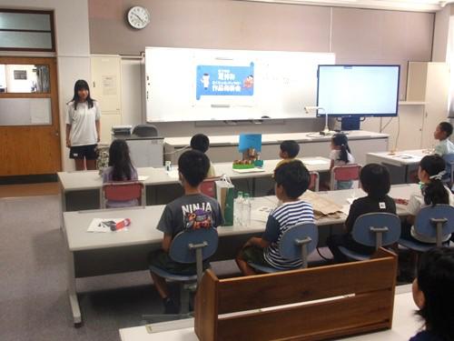 この発表会は、児童が司会進行を務め、一人一人が主役となって自分が夏休み中に作った作品や取り組んだことを全校の前で発表する貴重な機会です。