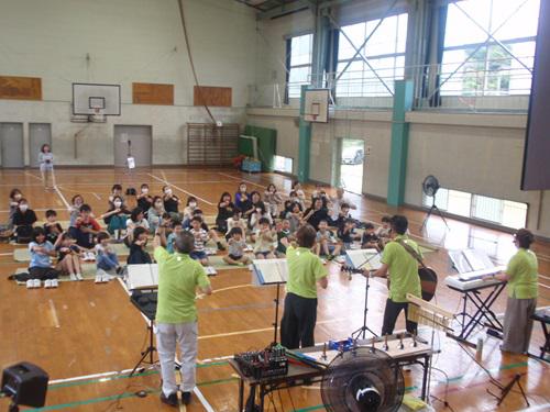 続く親子活動では、「わくわくバンド」さんをお招きし、コンサートを開催しました。エネルギッシュな演奏はもちろん、リズムに合わせて体を動かしたり、楽しいトークやパネルシアターがあったりと、盛りだくさんの内容で、会場は大いに盛り上がりました。