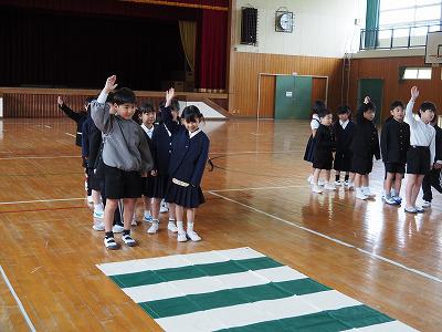渡り終えると、自分から、停まってくれた車におじぎをする1・2年生のこどもたちでした。