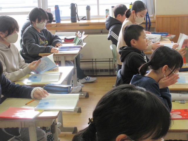 1組では国語の物語文「海のいのち」の音読を順に行っているところに入りました。