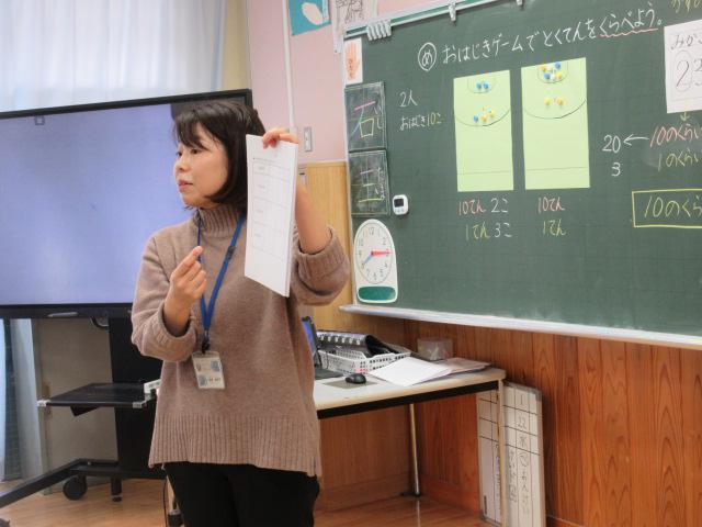 さて、先週22日(水)、校内研究授業の一環として、1年1組で算数の授業が公開されたのでその模様をご紹介します。