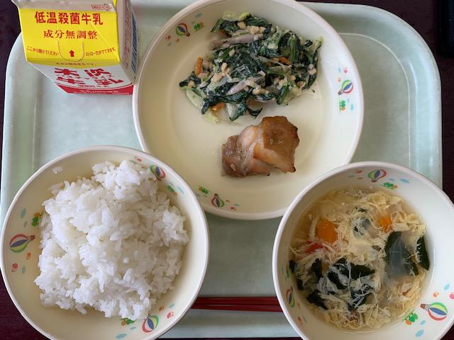 ○ご飯 ○牛乳 ○照り焼きチキン ○納豆サラダ ○トマたまスープ