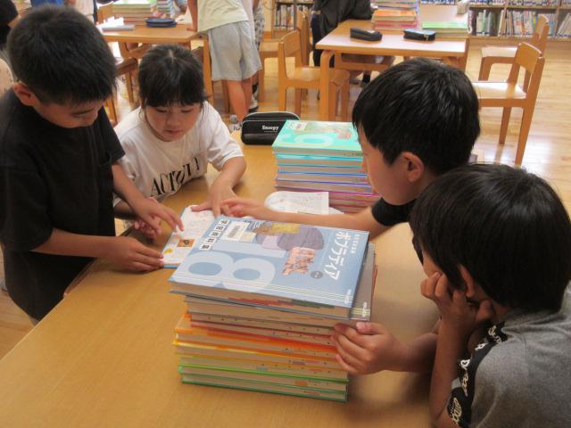 6月24日(月)は3年1組が、そして7月1日(月)には3年2組が、木下教諭の指導の下、百科事典の使い方を学びました。