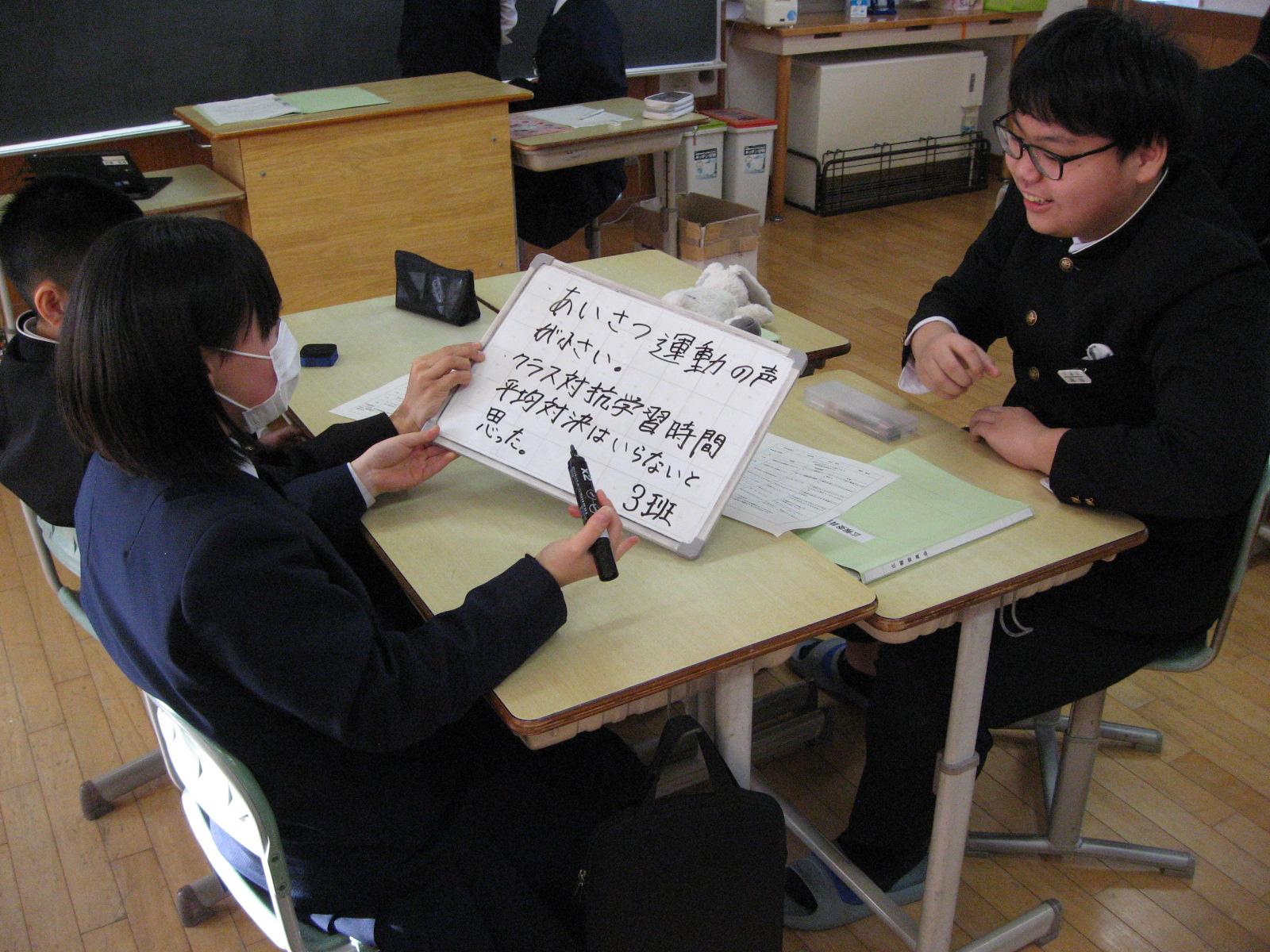各学級ともしっかりと話し合いを行っていました。生徒総会でたくさん意見が出ると思います。