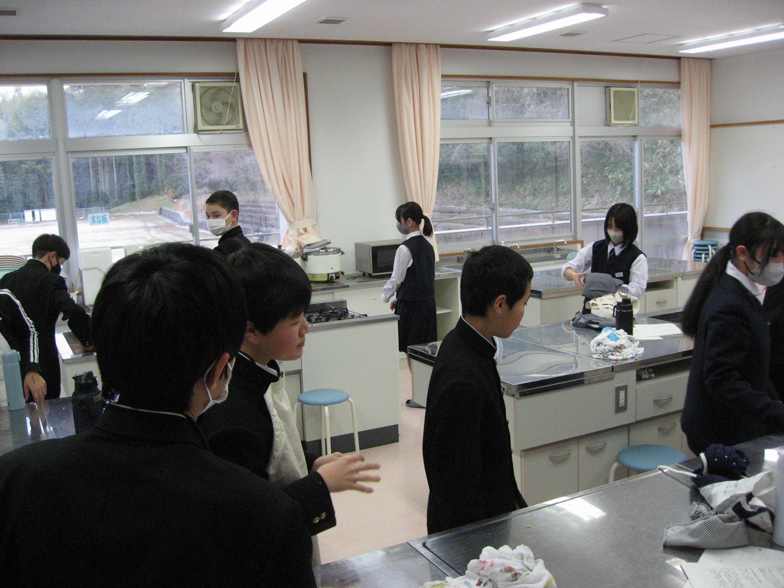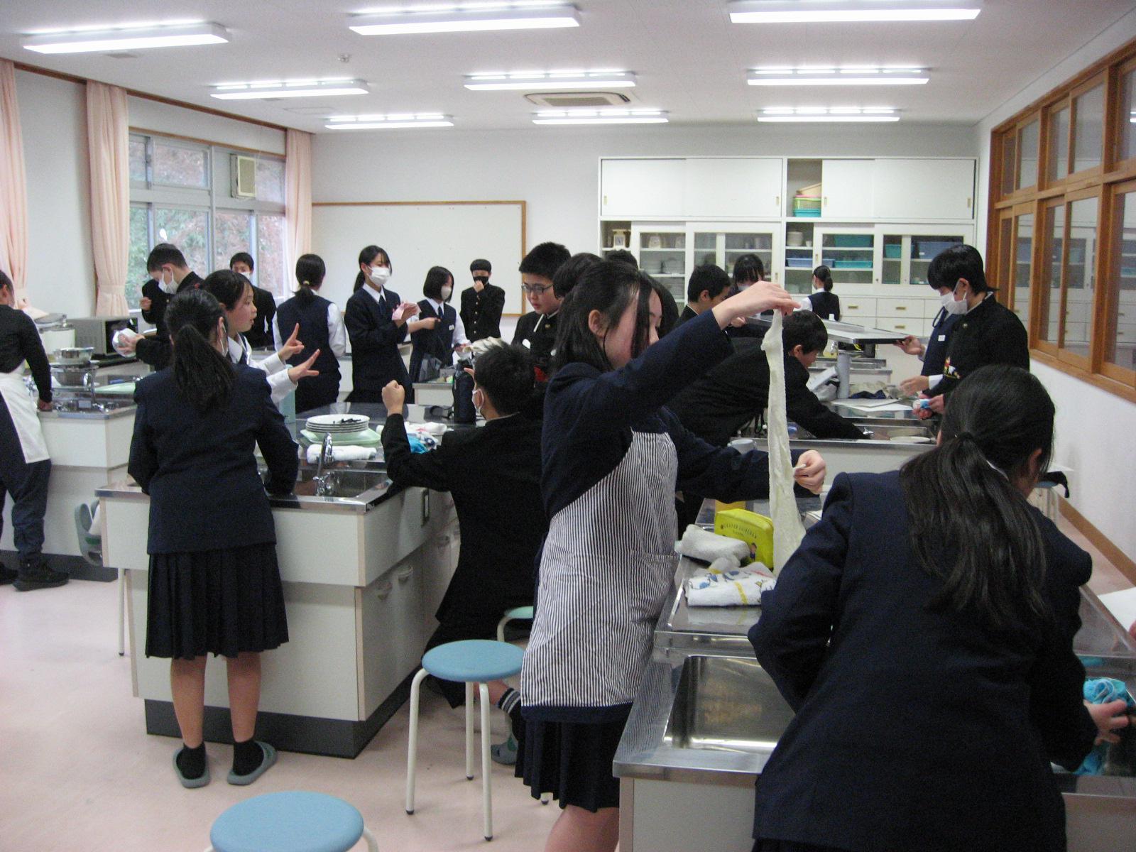 5・6時間目は、1年2組は家庭科で調理実習をしていました。