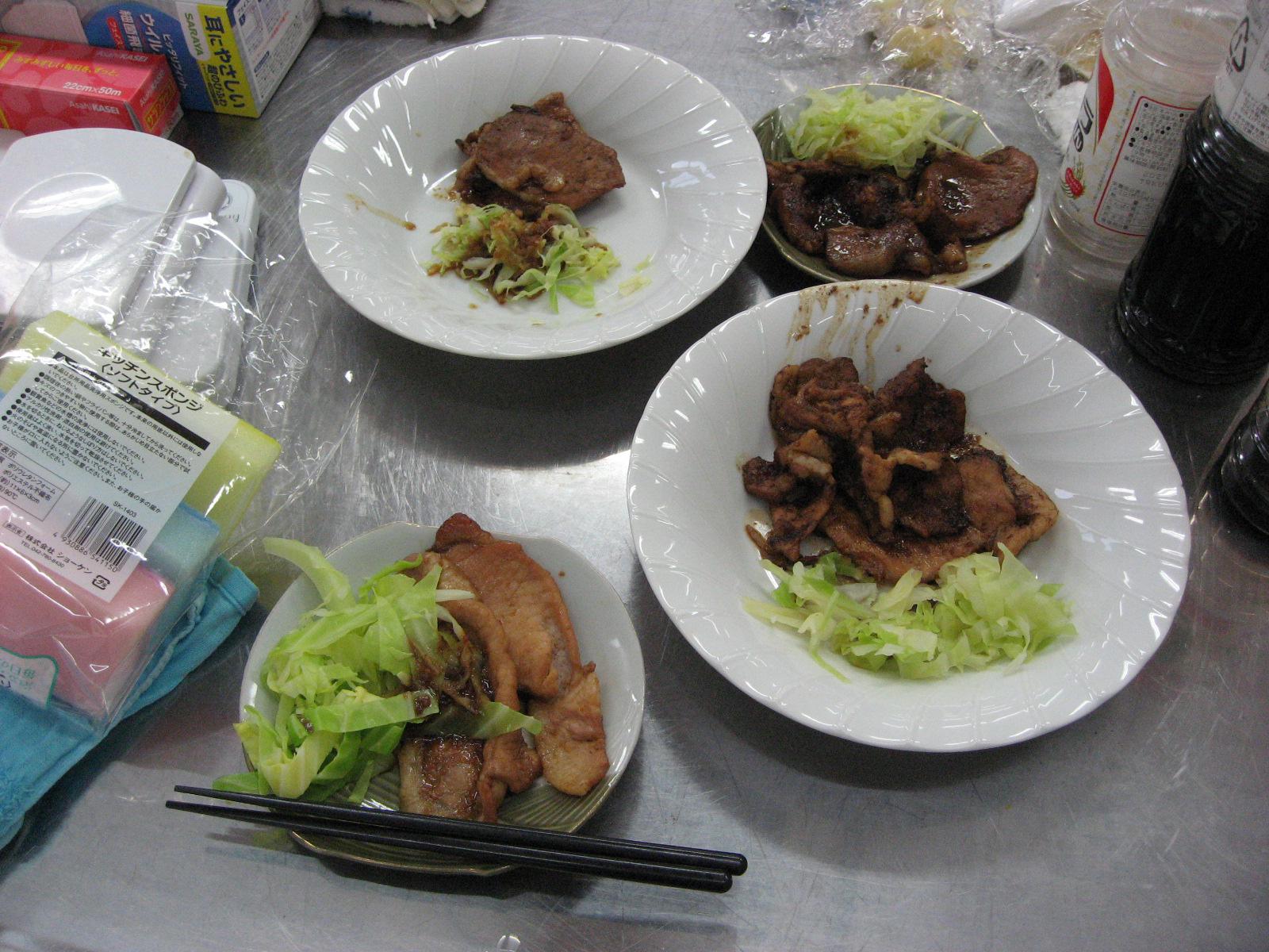 メニューは「豚肉の生姜焼き」でしょうか。とても美味しそうに出来上がっていました。