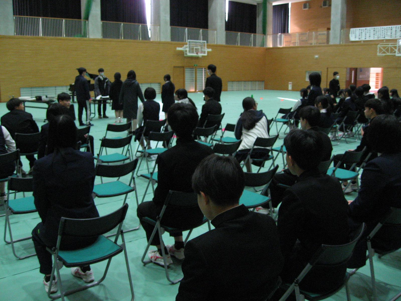 1・2校時、試験のない3年生だけではありますが、卒業式の練習を行いました。