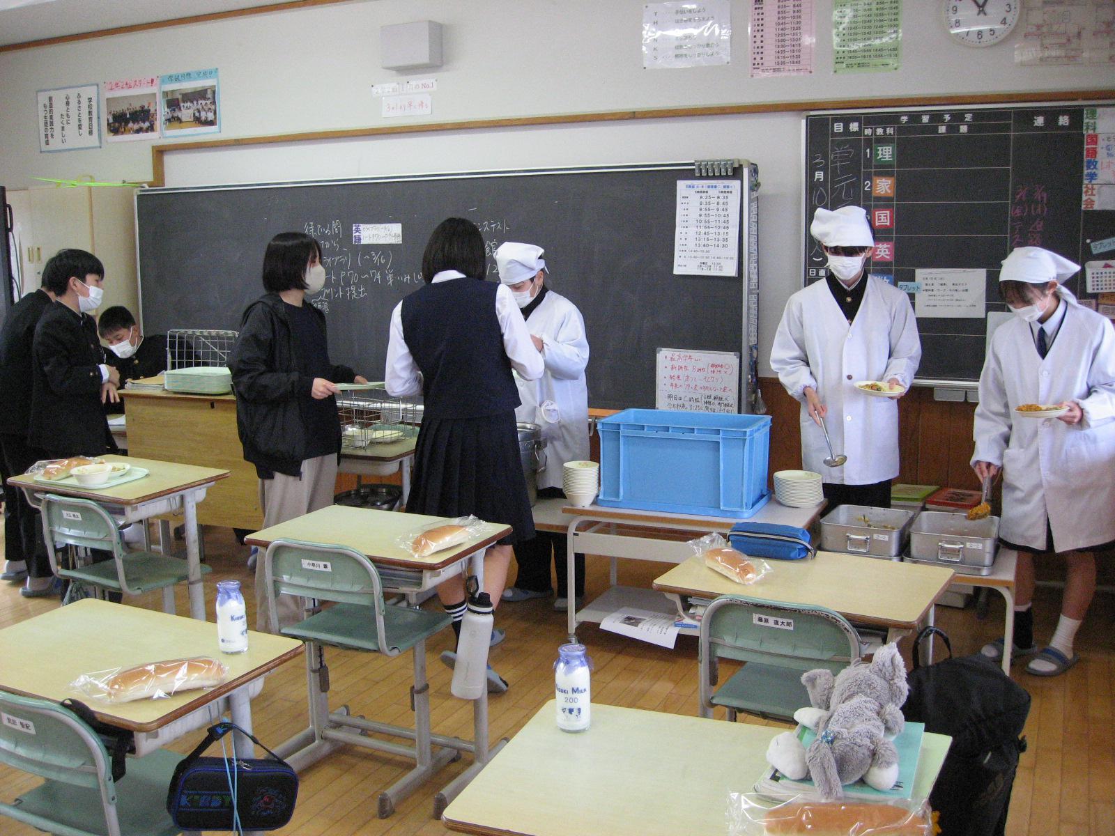 2年2組の給食準備の様子です。
