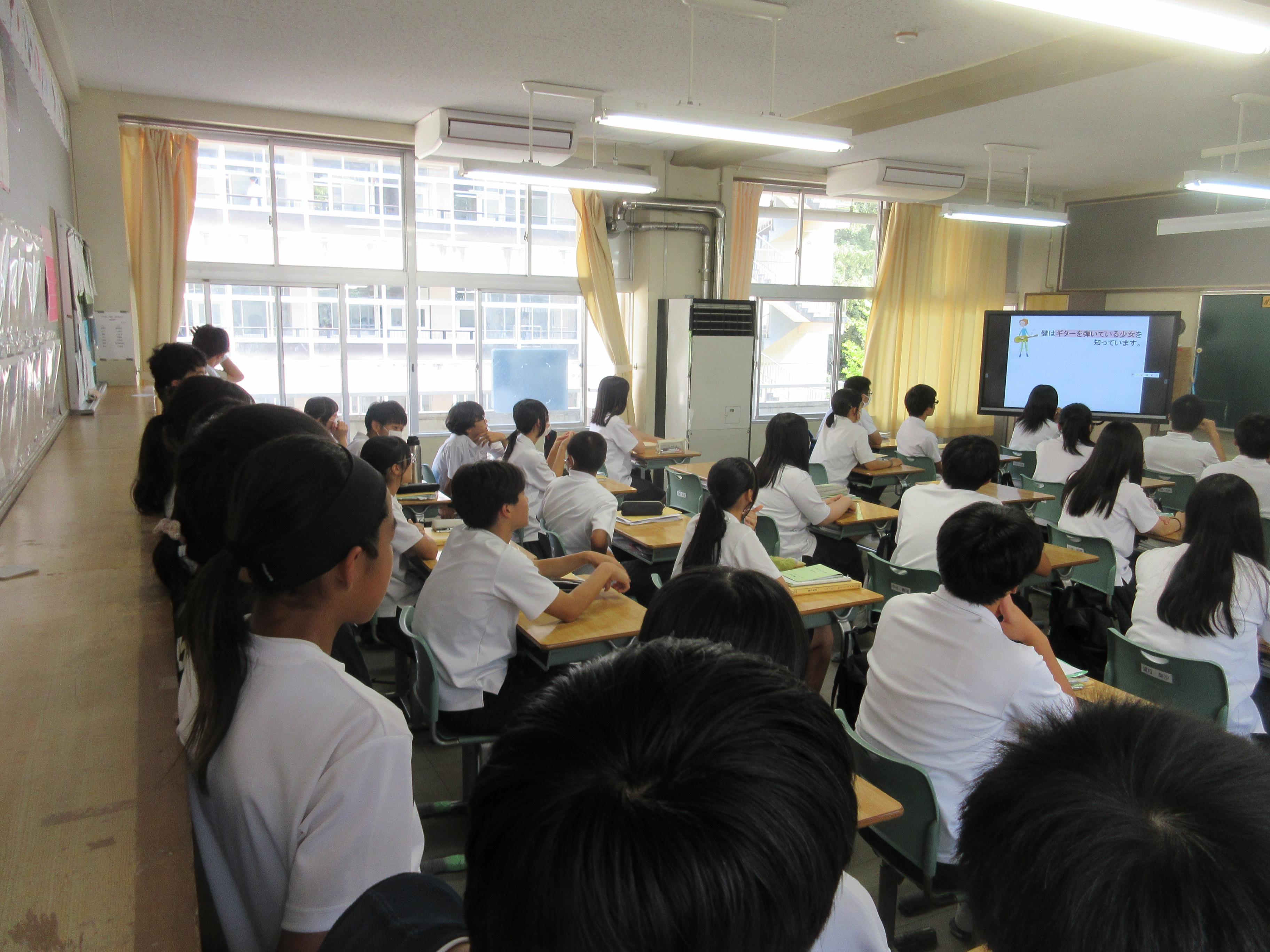 今日の午後、6年生は松江市立第四中学校に授業見学に出かけました。はじめの会では第四中学校の校長先生から、小学校と中学校の違い(授業や生活時程など)、生徒会や学校行事、部活動などのお話がありました。そのお話の最後には「校長先生からの3つのお願い」として「真剣に学習に取り組む」「きまりを守る」「相手の心を大切にすること」というお話がありました。 ![]()