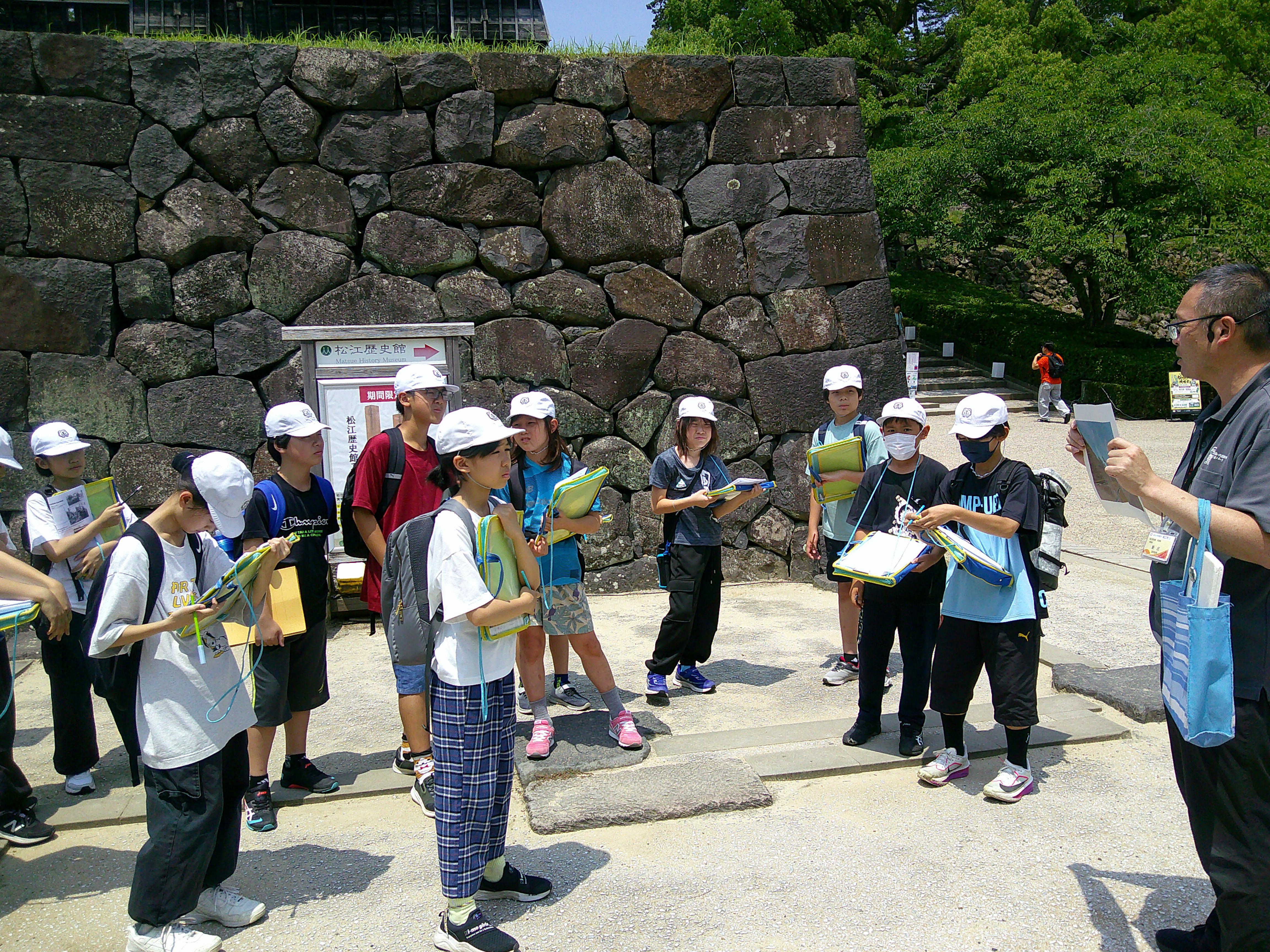 2組の写真を掲載します。2組も暑さに負けずに頑張っていたようです。ただ、2組は後半に松江城に上ったので、さらに疲れが出たかもしれません。終わってから、1組も2組も子どもたちが見学が楽しかったと言っていたので、よかったです。6年生よく頑張りました!!