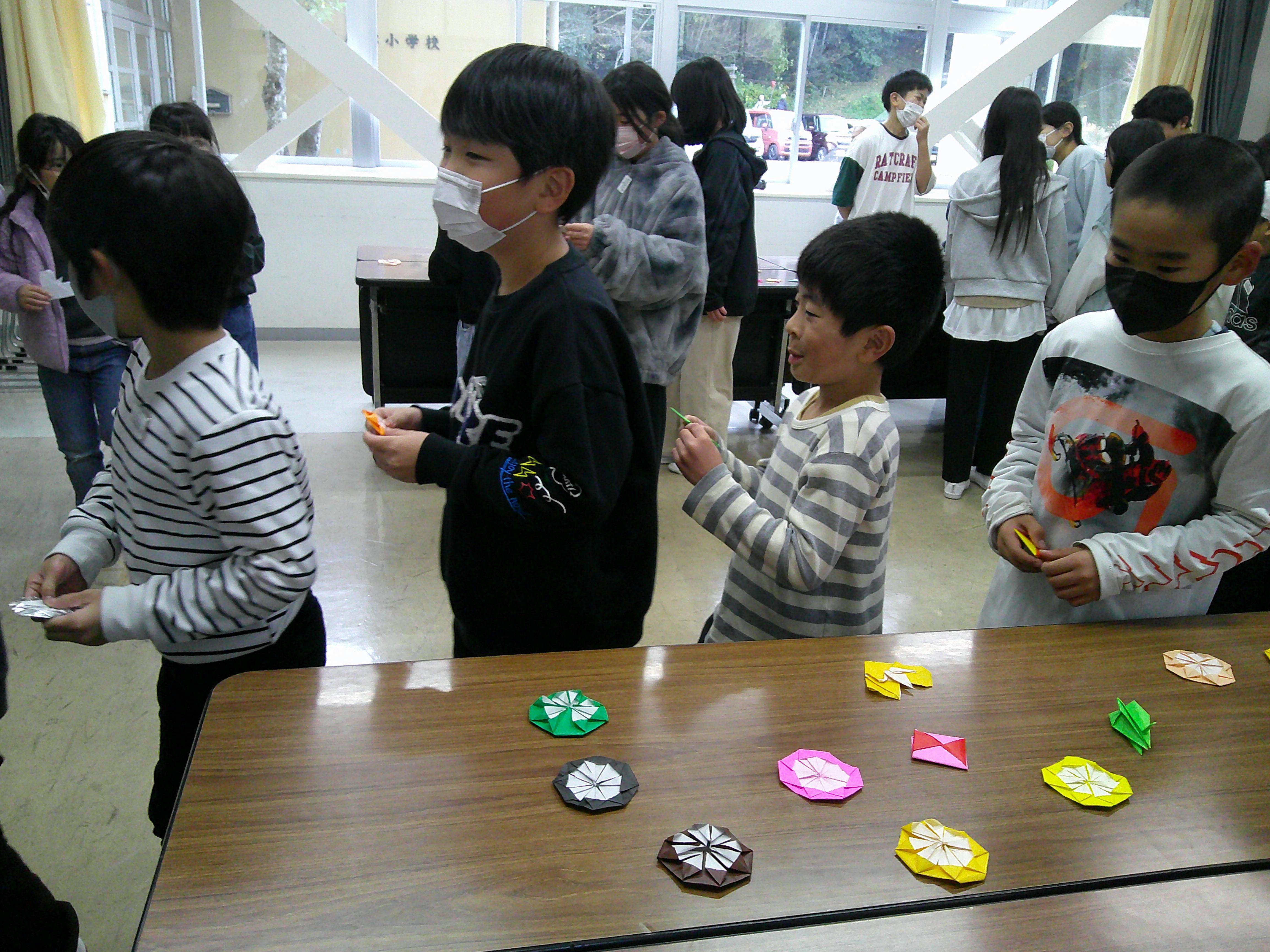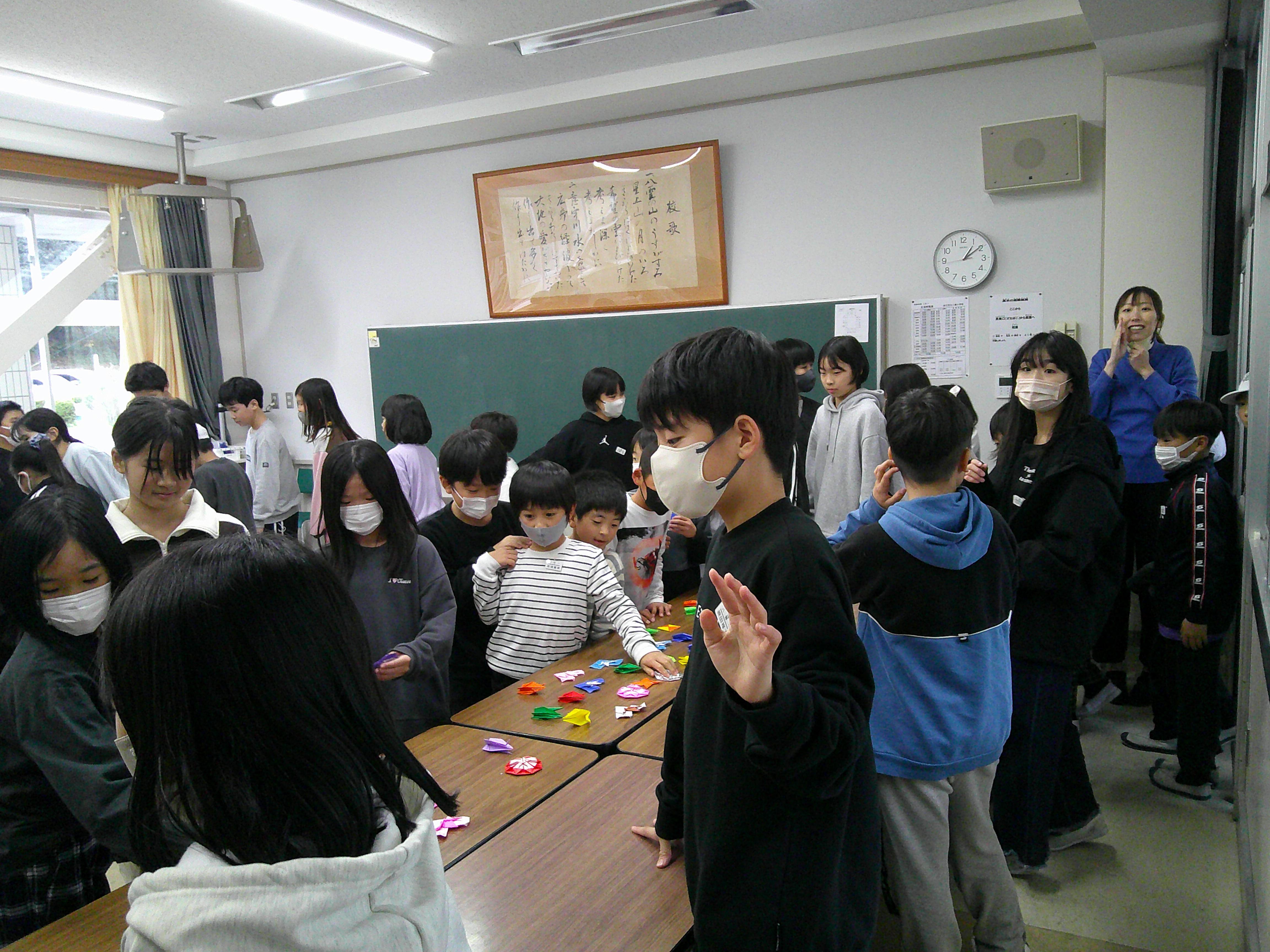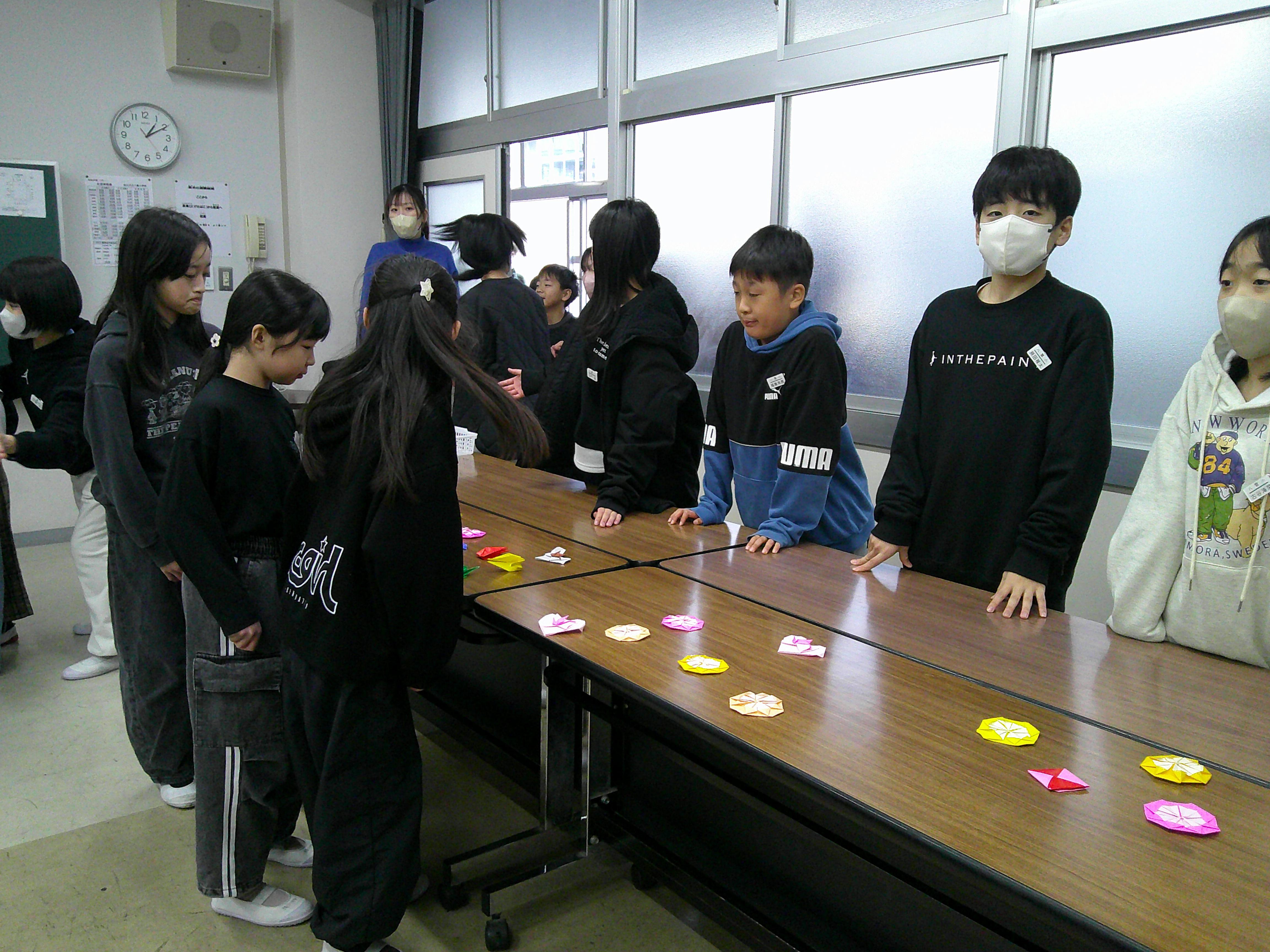 先日、赤い羽根共同募金贈呈式を紹介しましたが、その後、生活委員会では、募金に協力してくれた子どもたちお礼をしようと、折り紙を折ってプレゼントしました。