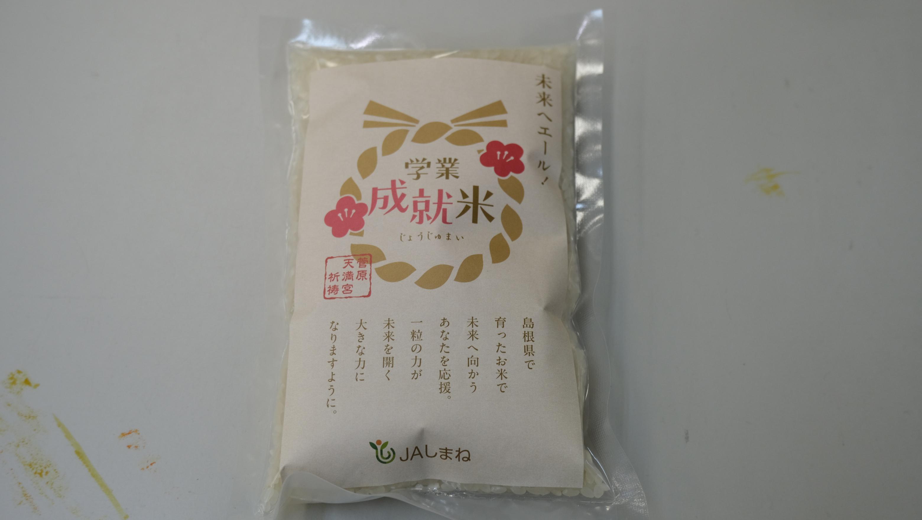 また、今日はJAしまね様より『学業成就米』の寄贈があり3年生全員にわたした。趣意書には「県内産のお米を縁起物として、節目となる大切な日に食してほしい」とあります。関係される皆様に直接お会いすることはできませんが、多くの気持ちが寄せられていることは想像できます。皆様にお礼申しあげます。ありがとうございました。