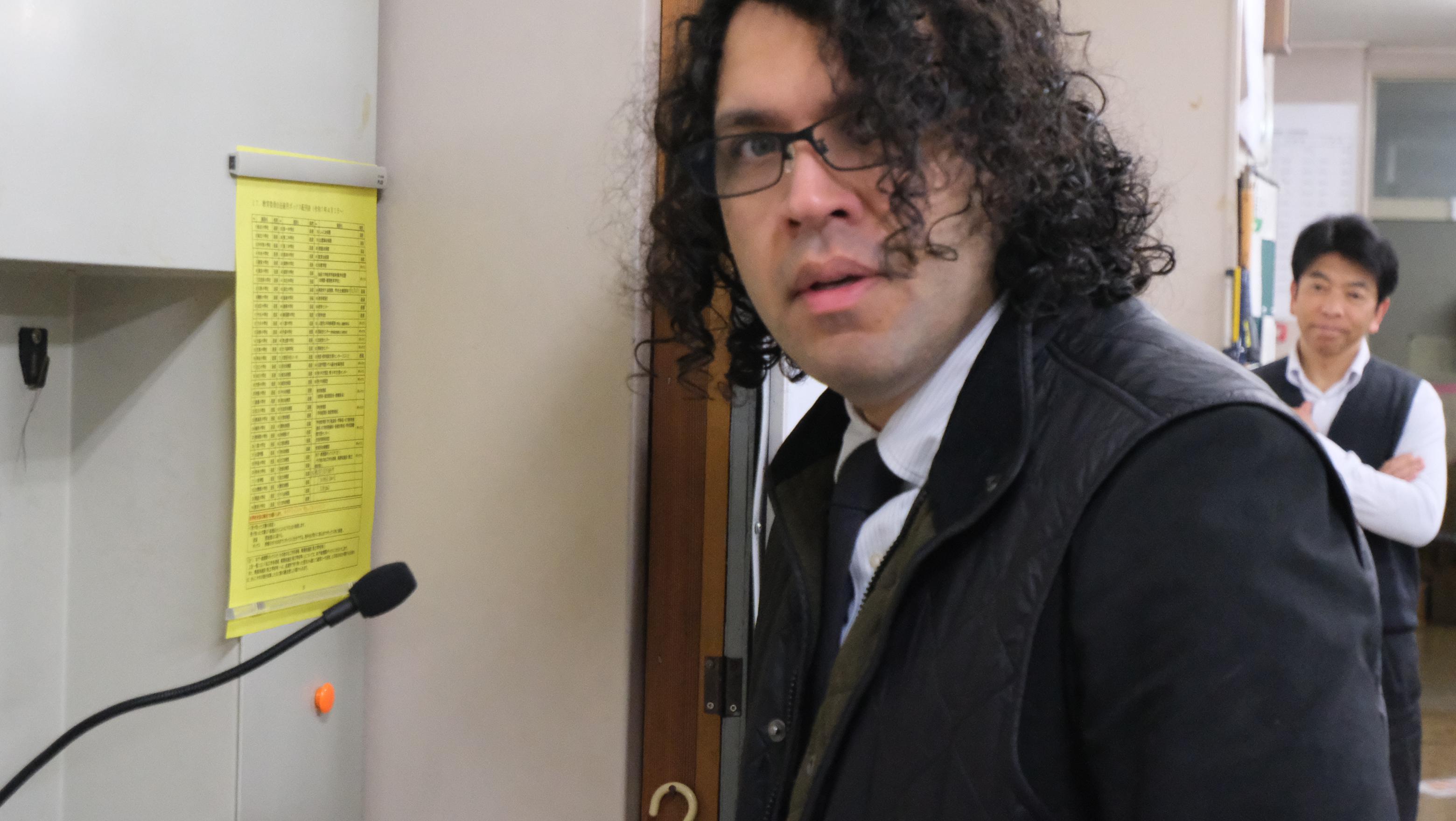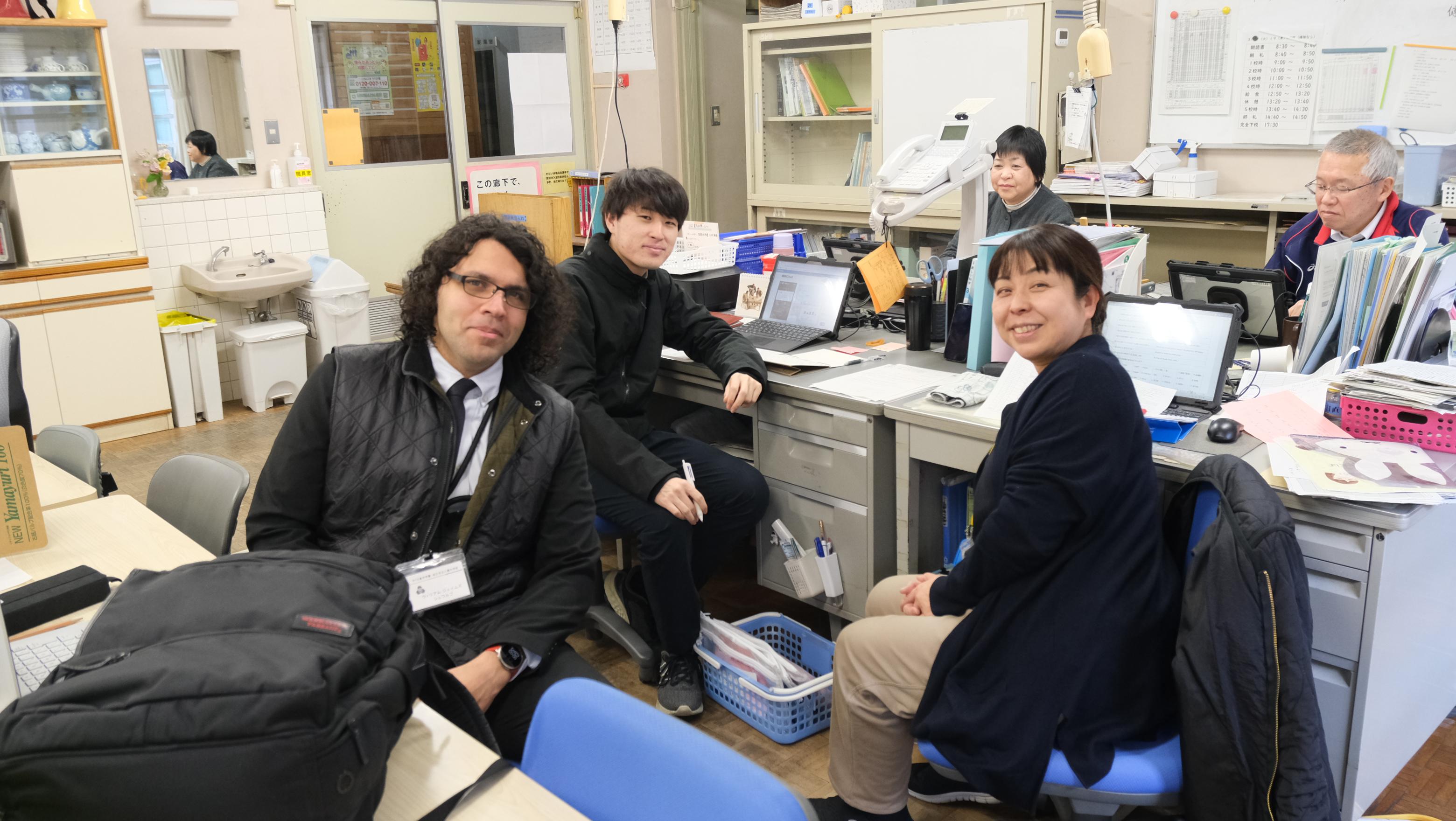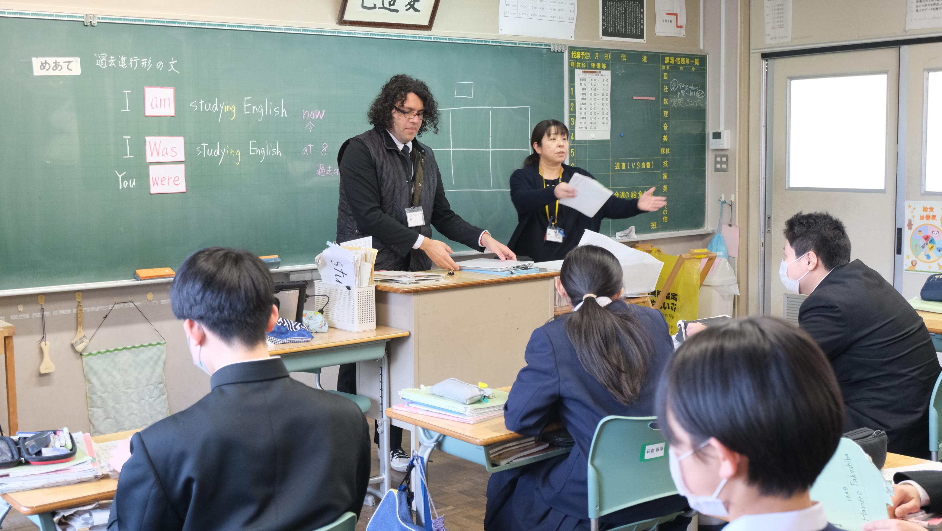 「おはようございます。今日は3学期の終わりとなりみなさんにあいさつします。楽しかったですか?外国語は難しいかもしれませんが、この1年間で楽しさも感じたはずです。4月から広島へ帰ります。八雲中学校では、楽しい思い出をありがとうございます。Thank you very much.William」