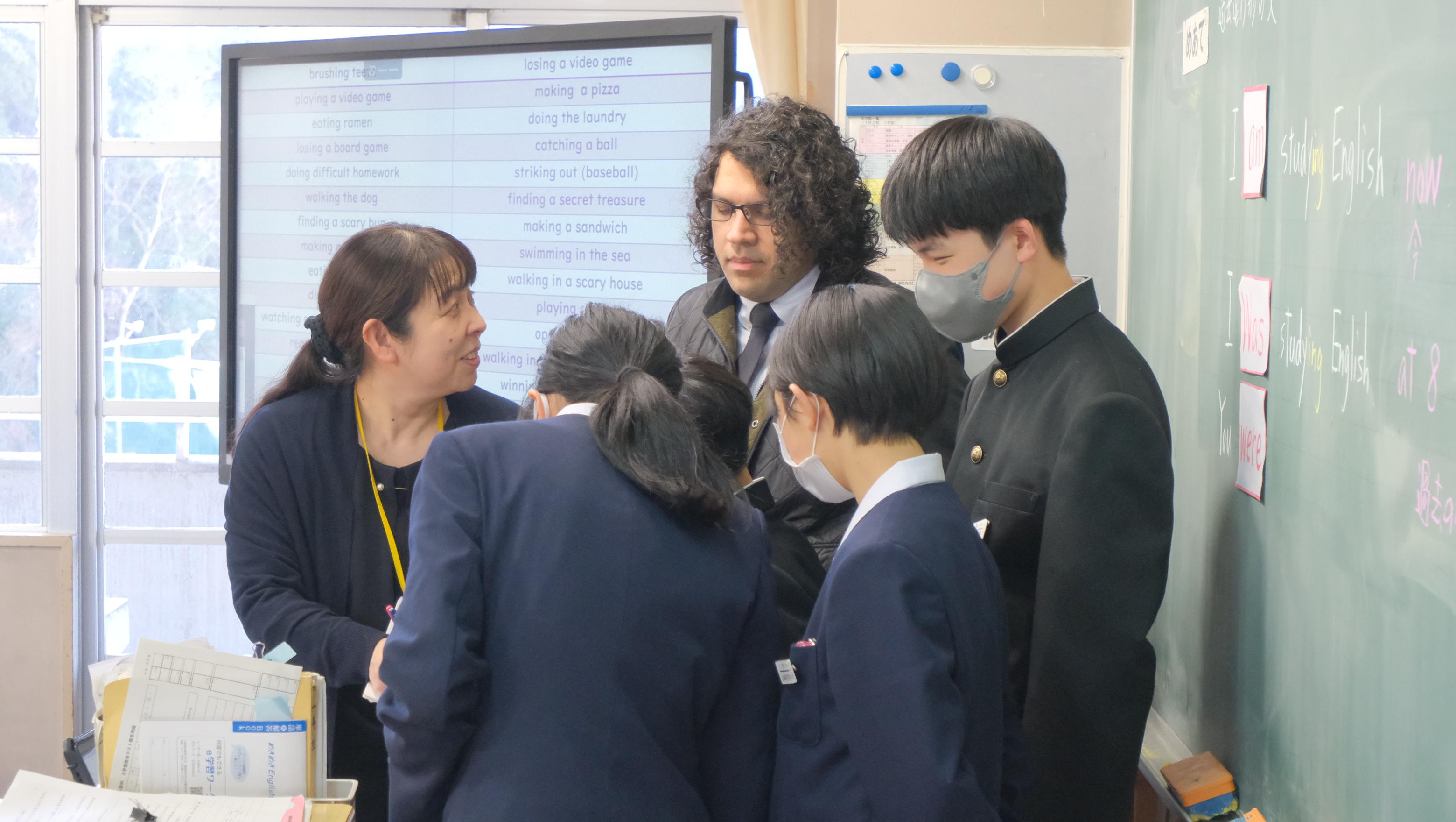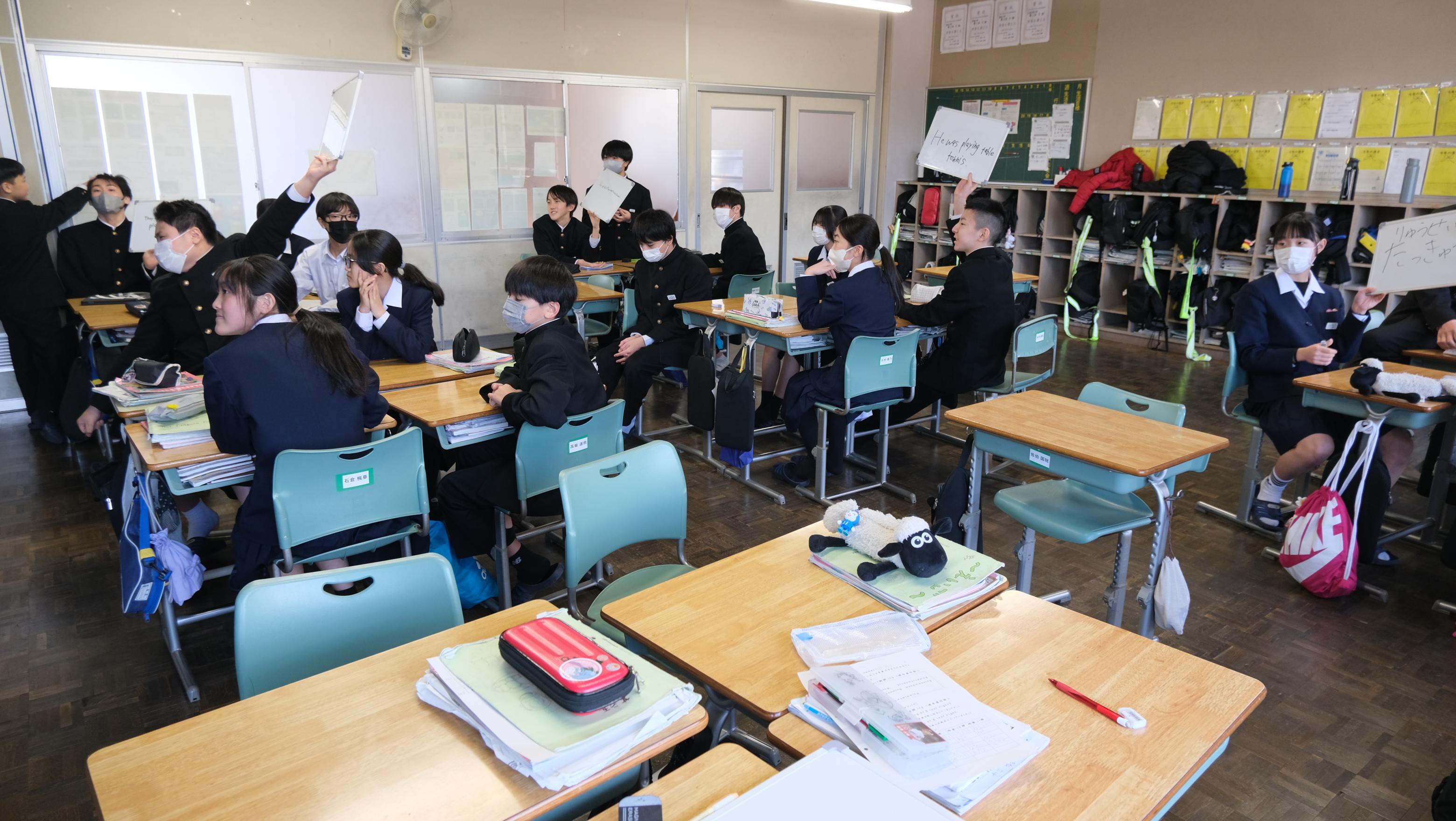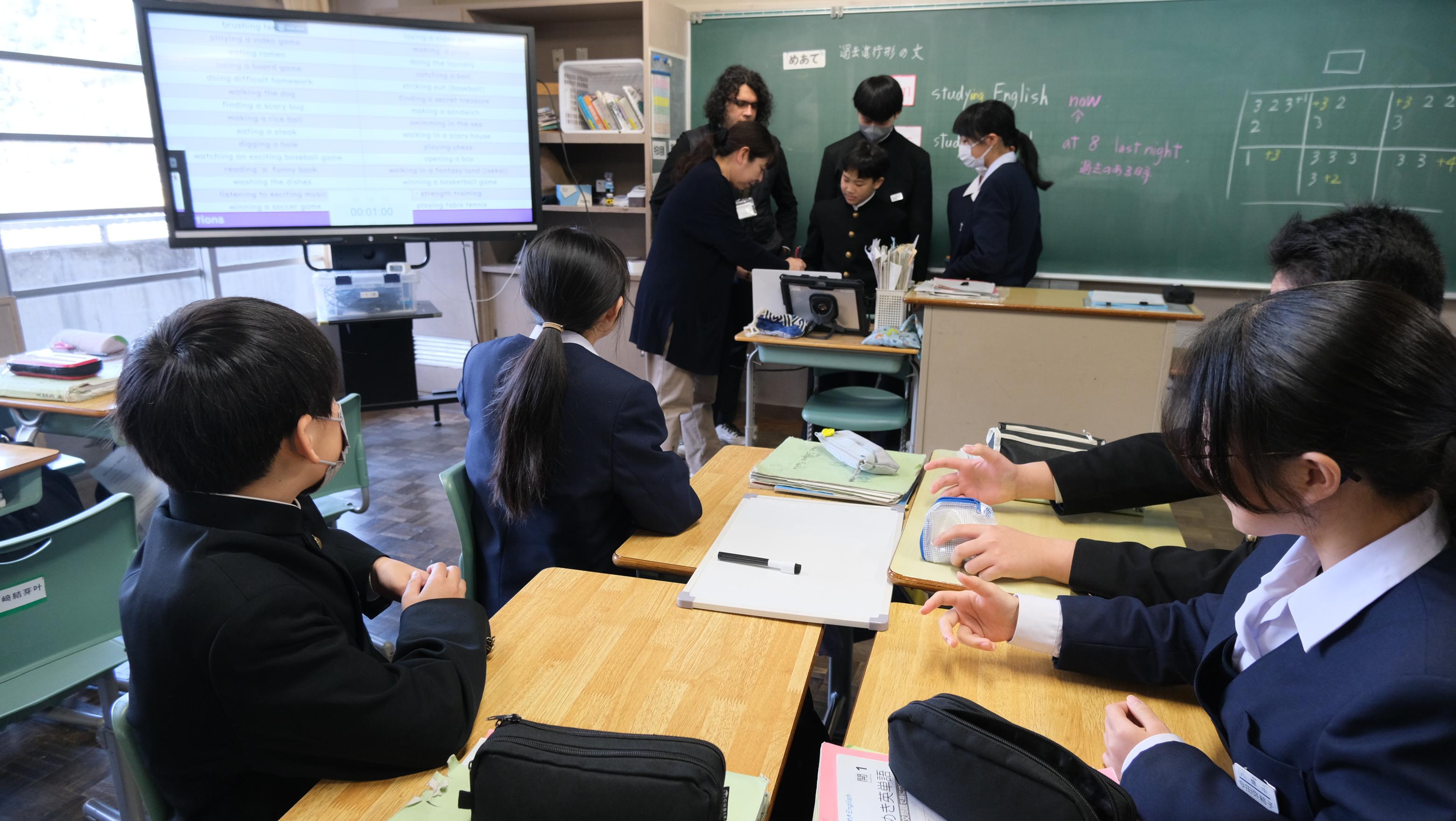 1年生の授業では、楽しいジェスチャーゲームで盛り上がりました。短い期間ではありましたが、八雲中学校の感謝の気持ちを送ります。「Thank you so much.We wish your happiness!」