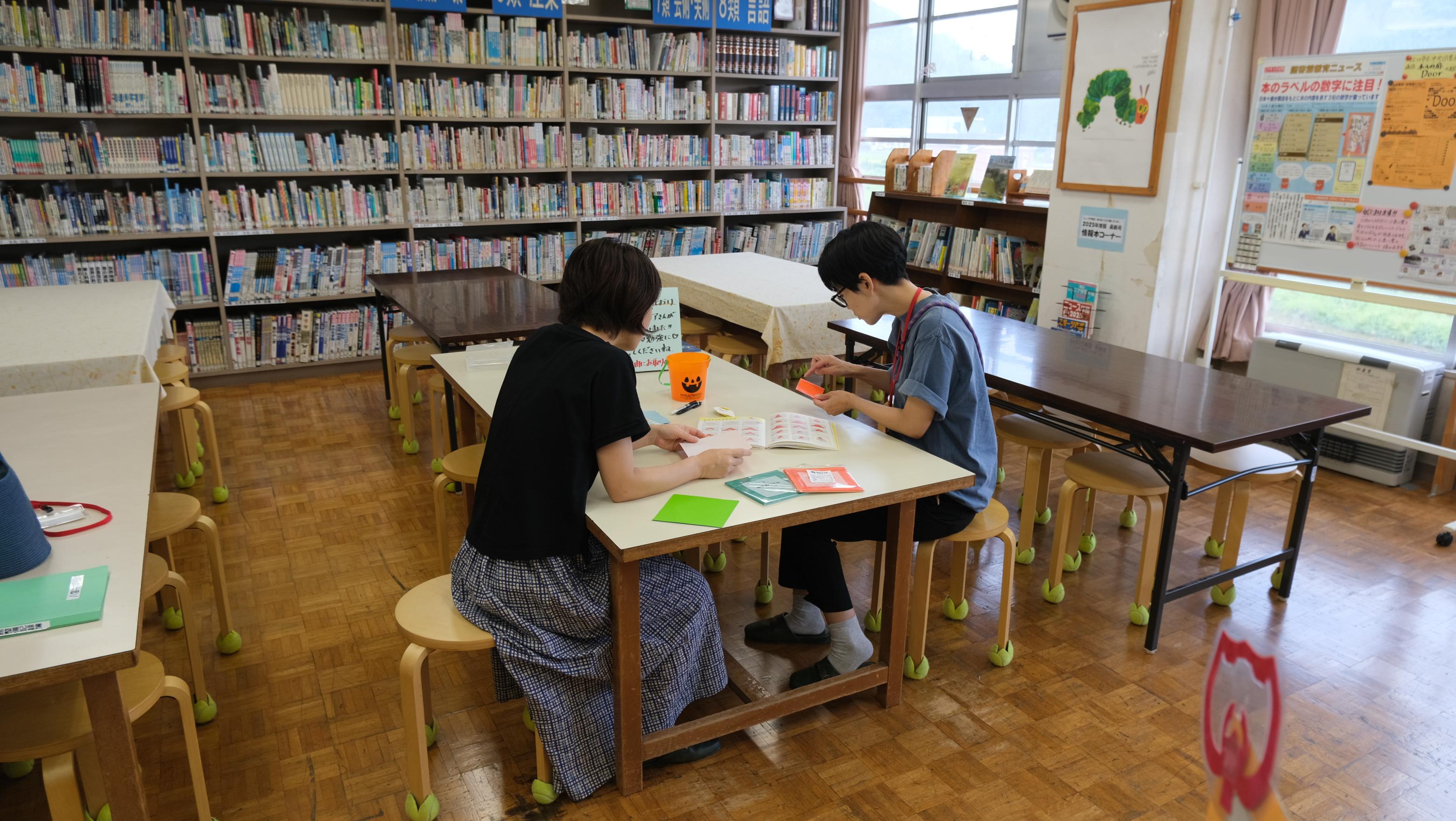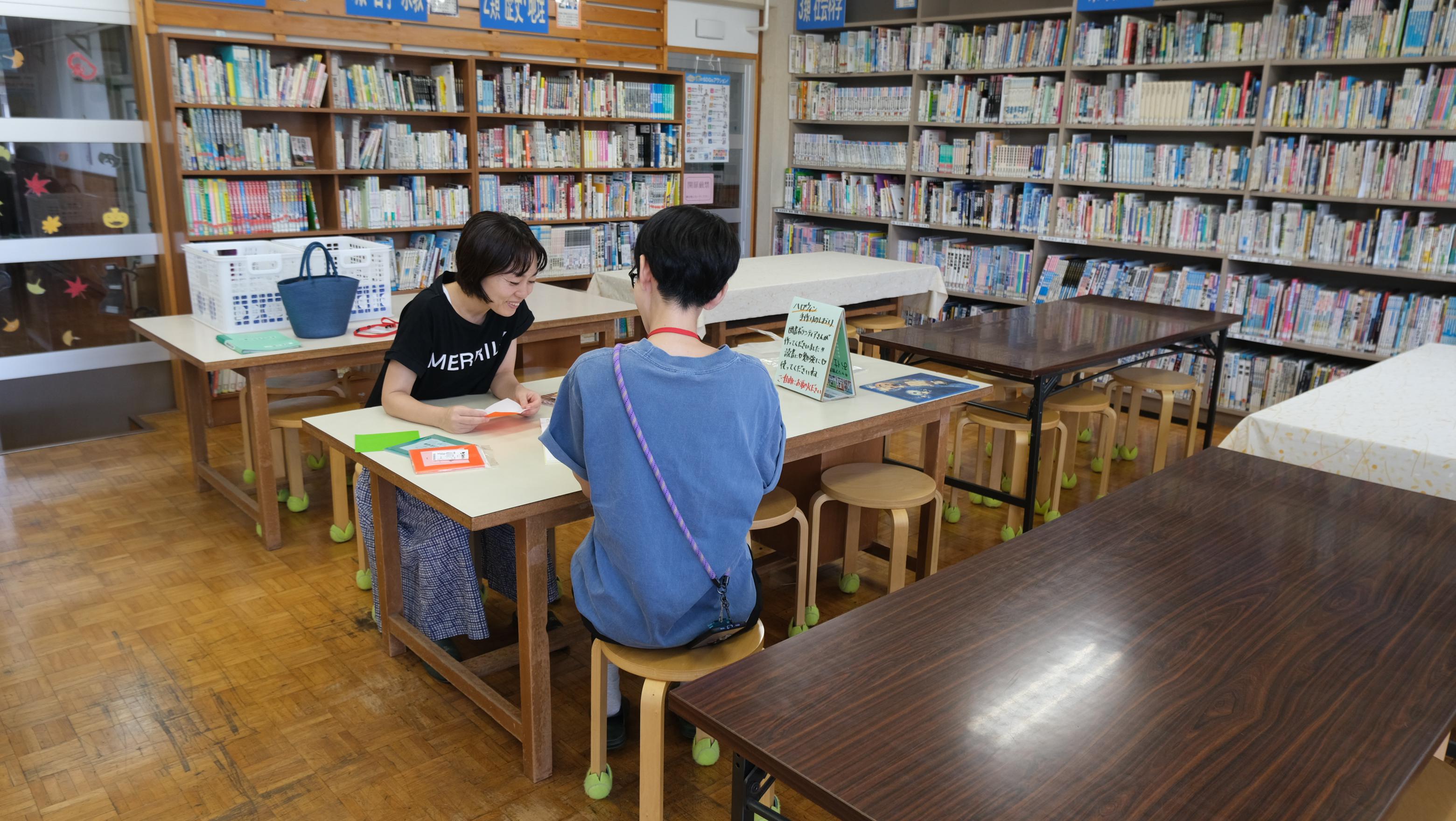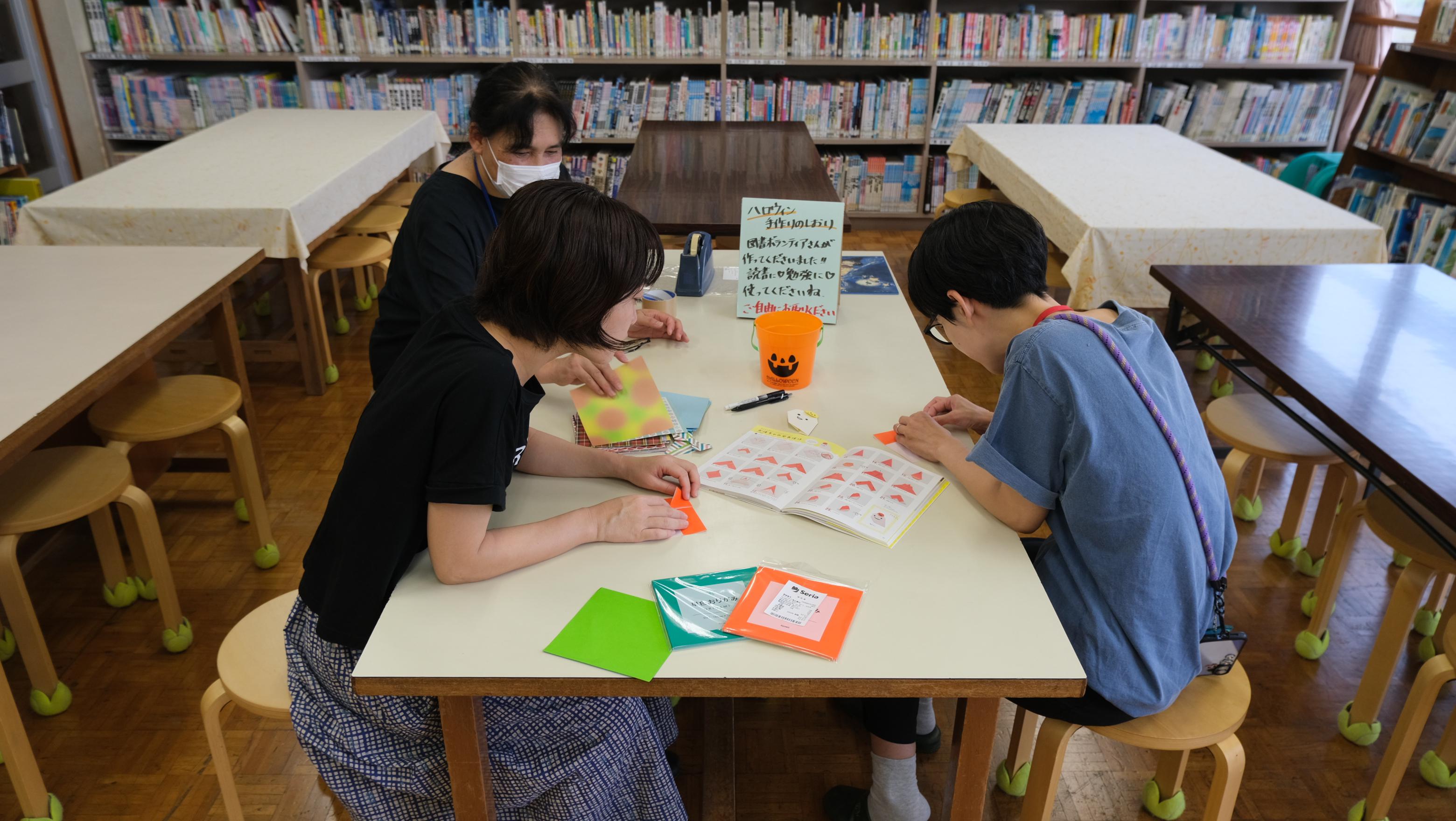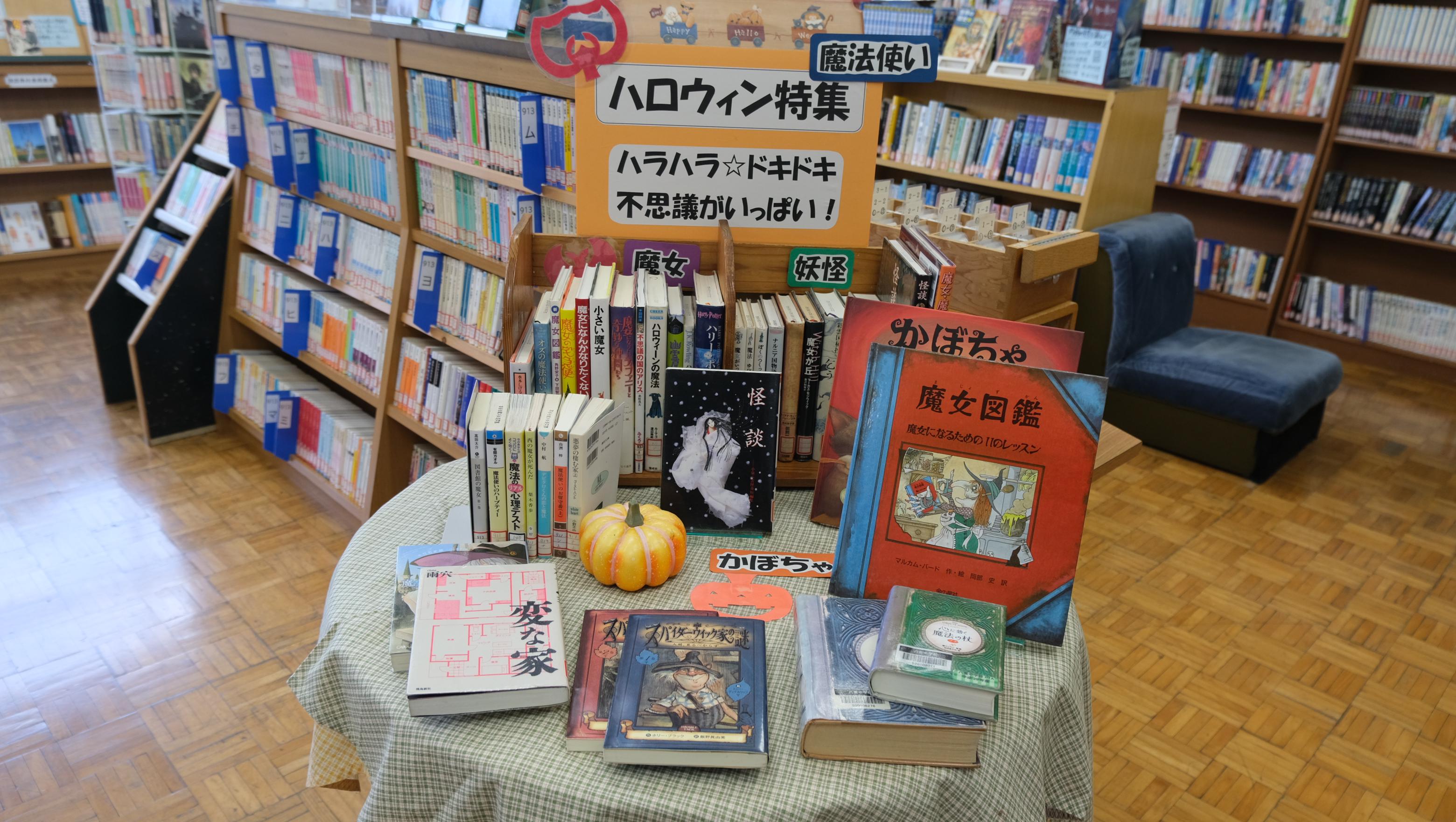 本日(9/25)は、図書館ボランティアの活動日でした。今日は2名の方にボランティアに参加していただき、ハロウィン版のしおりを折り紙で作っていただきました。図書館には委員会で作ったしおりがたくさんありますが、折り紙でかわいらしいしおりが出来上がっていました。また、図書館のハロウィンコーナーも飾り付けていただき、季節感を表現していただきました。