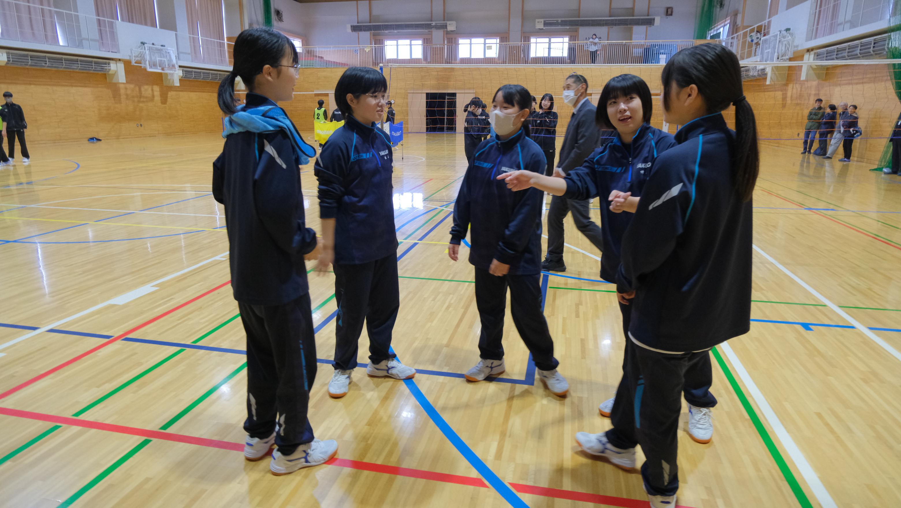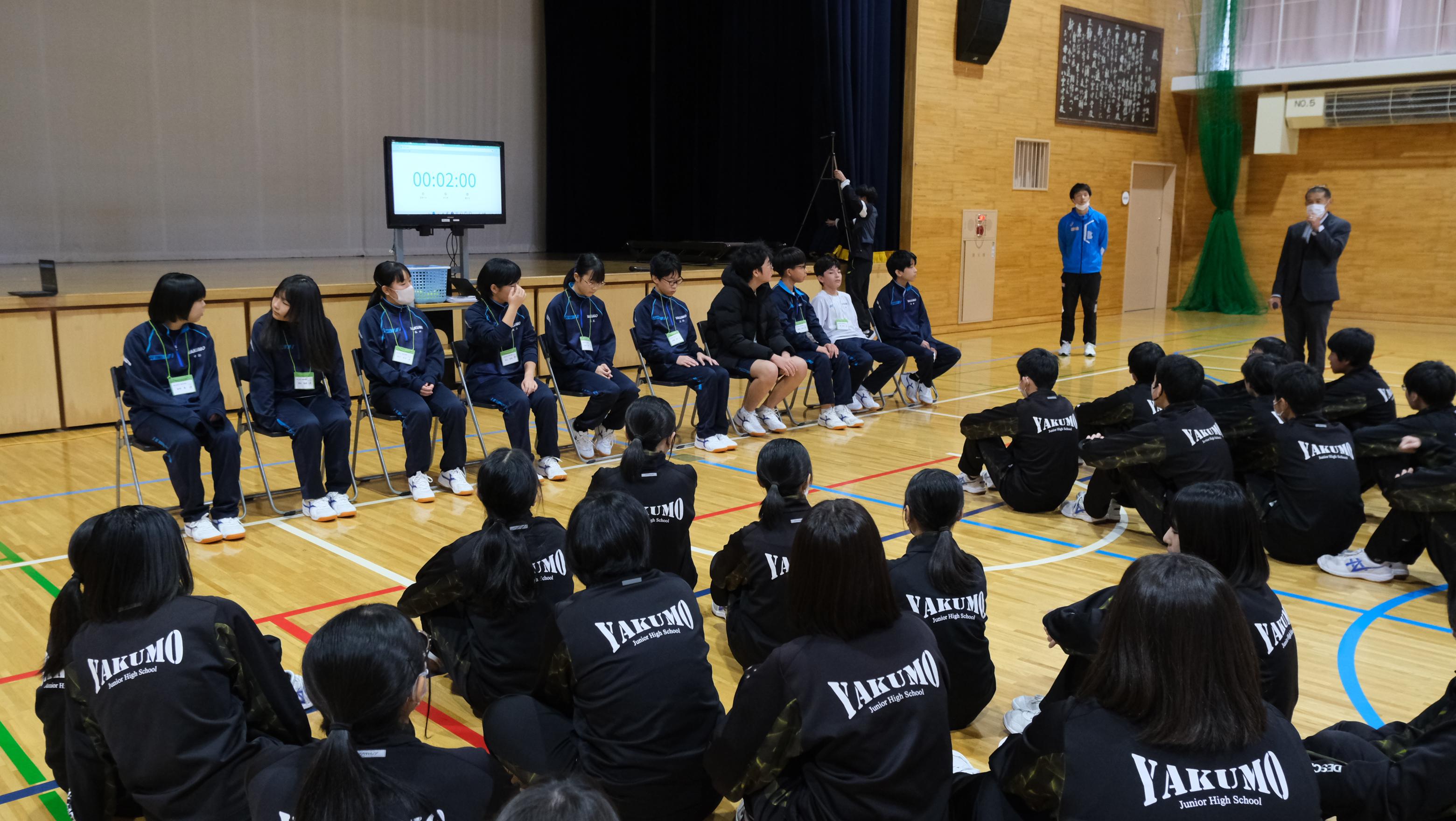 中学校では、2年生体育の授業に参加し、自己紹介のあとバレーボールをしました。一人だけボールをキャッチできるルールで、誰もが楽しく参加できる内容でした。また、体育館には暖房設備があり、寒い中でしたがとても快適に体を動かすことができました。さすが北海道だなぁと感心する生徒もいました。今回交流した2年生の中から、来年松江市の八雲中学校をぜひ訪問してほしいと思います。