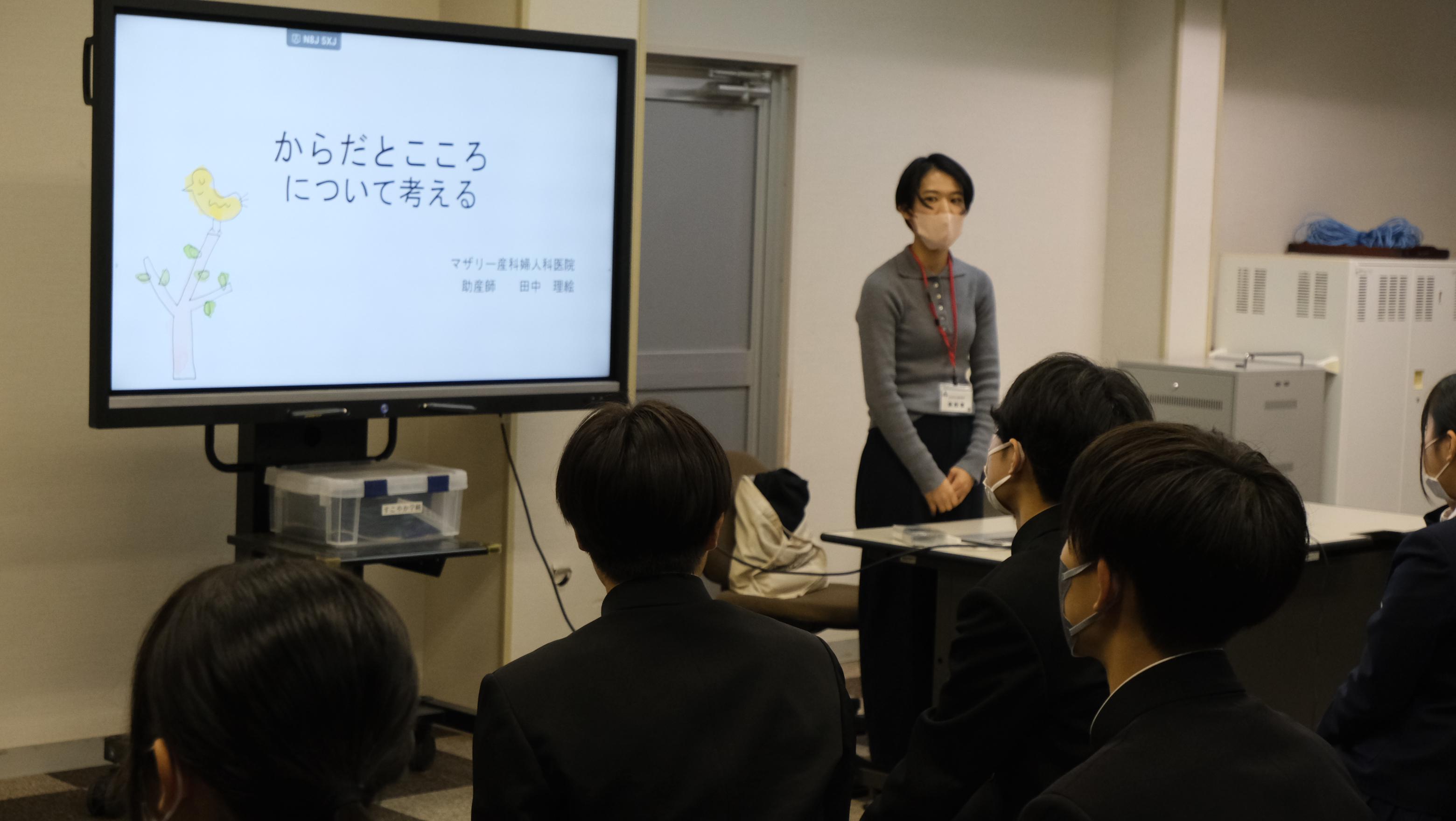 本日19日(金)午後から、3年生性教育講演会がミーティングルームで行われました。マザリー産科婦人科医院より2名の講師の方においでいただき、「からだとこころについて考える」と題してお話を伺いました。思春期のこころとからだの変化についてお話を聞き、男女の性的な心情の違いや、相手を理解し思いやりのある行動をとることについて理解を深めました。メディアの中の誤った情報にとらわれることなく、正しい情報を選択し、自己決定ができることの大切さにもふれていただきました。3年生にとってはこれからの自立にむけてとても大切なお話でした。終わりに数名の生徒が講師の方々を玄関までお見送りしてくれました。