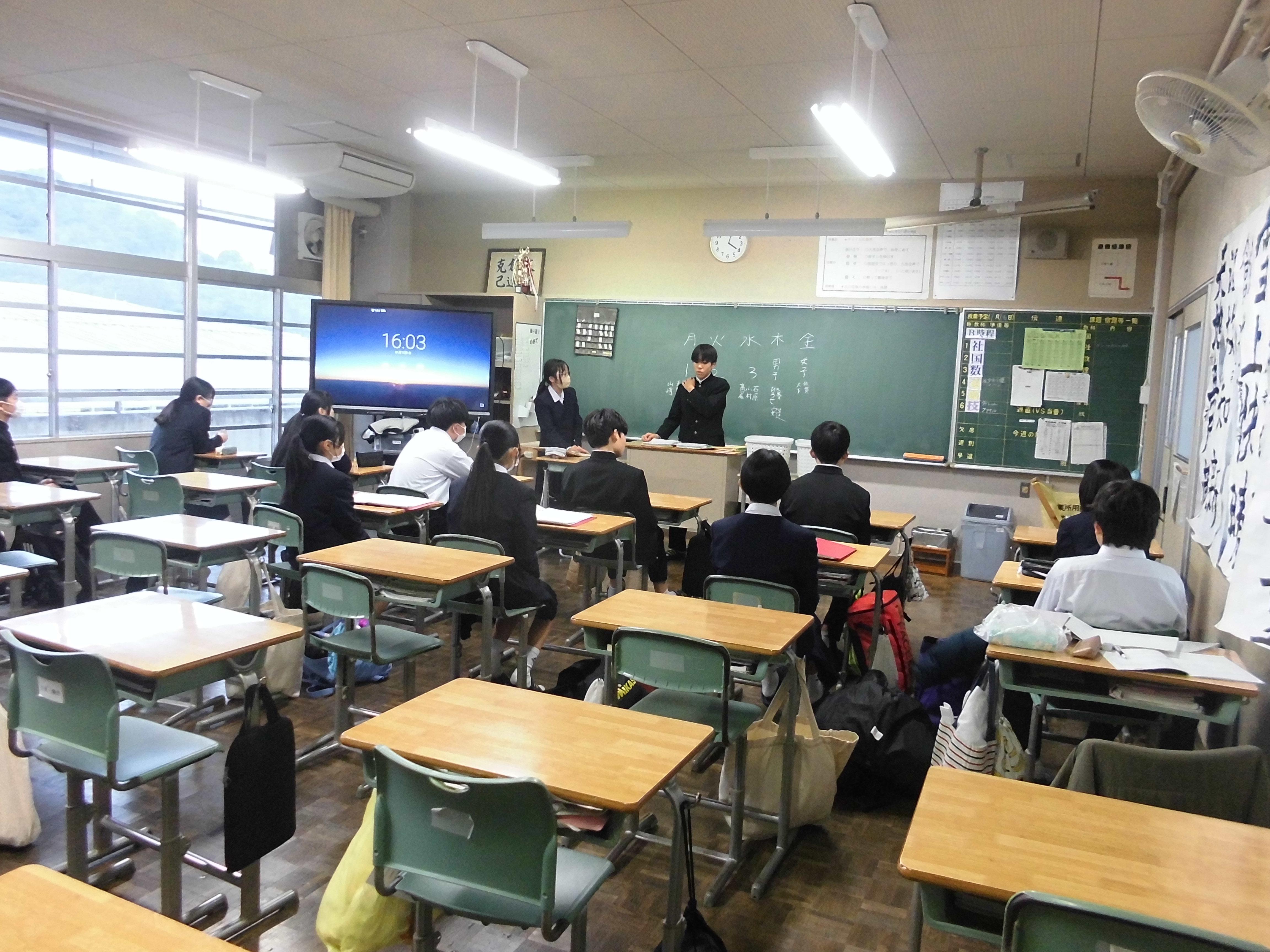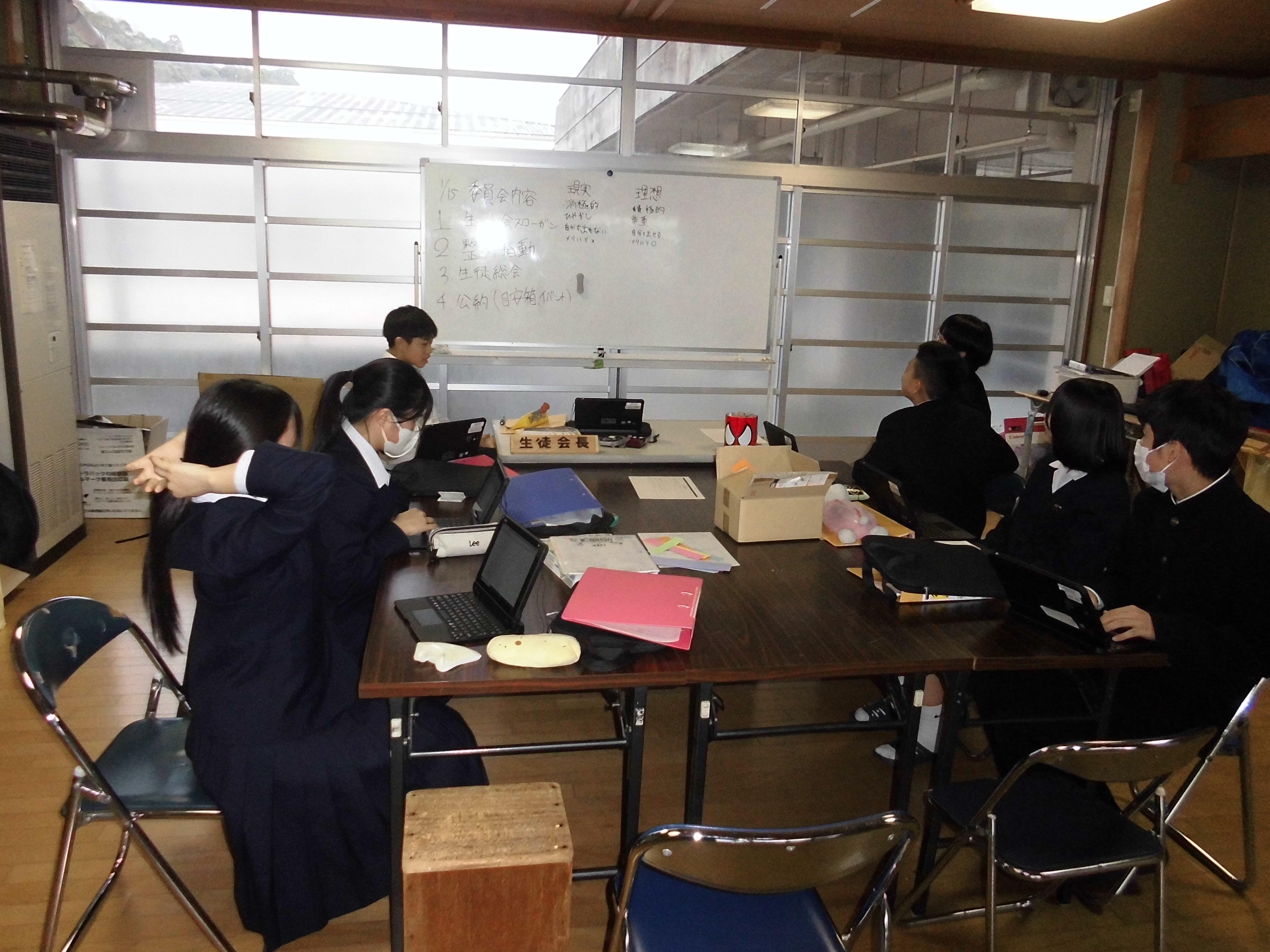 本日(1/15)、新生徒会となってはじめての生徒委員会が行われました。これまで3年生が進めていた内容を2年生、1年生の委員が進めていました。3学期、すでにそれぞれの委員会での活動ははじまっていますが、今日の委員会で確認をしていました。生徒会本部では、生徒会のスローガンについて話し合いが行われました。話し合いでは、「個性」や「発揮」といった言葉があがりました。これからの八雲中学校の目指す姿について試行錯誤する話し合いが行われています。