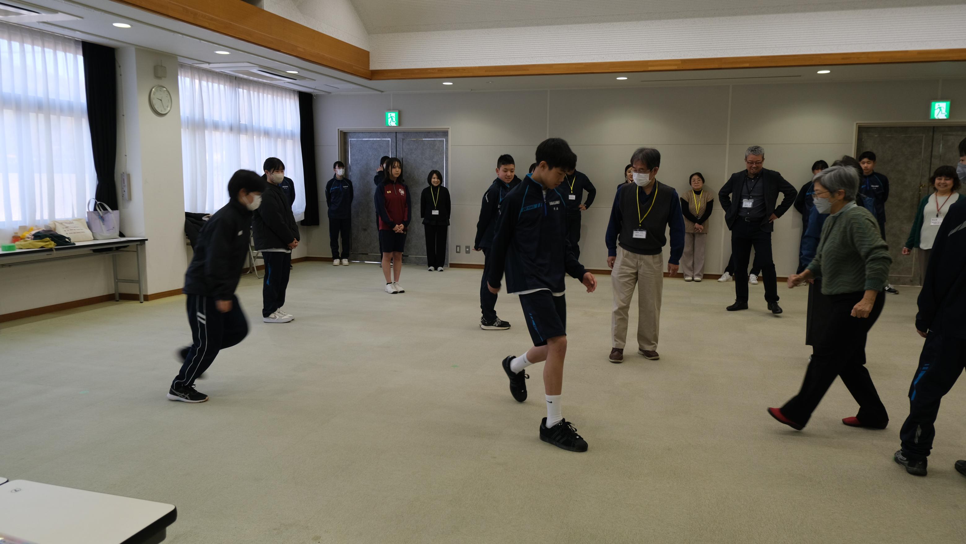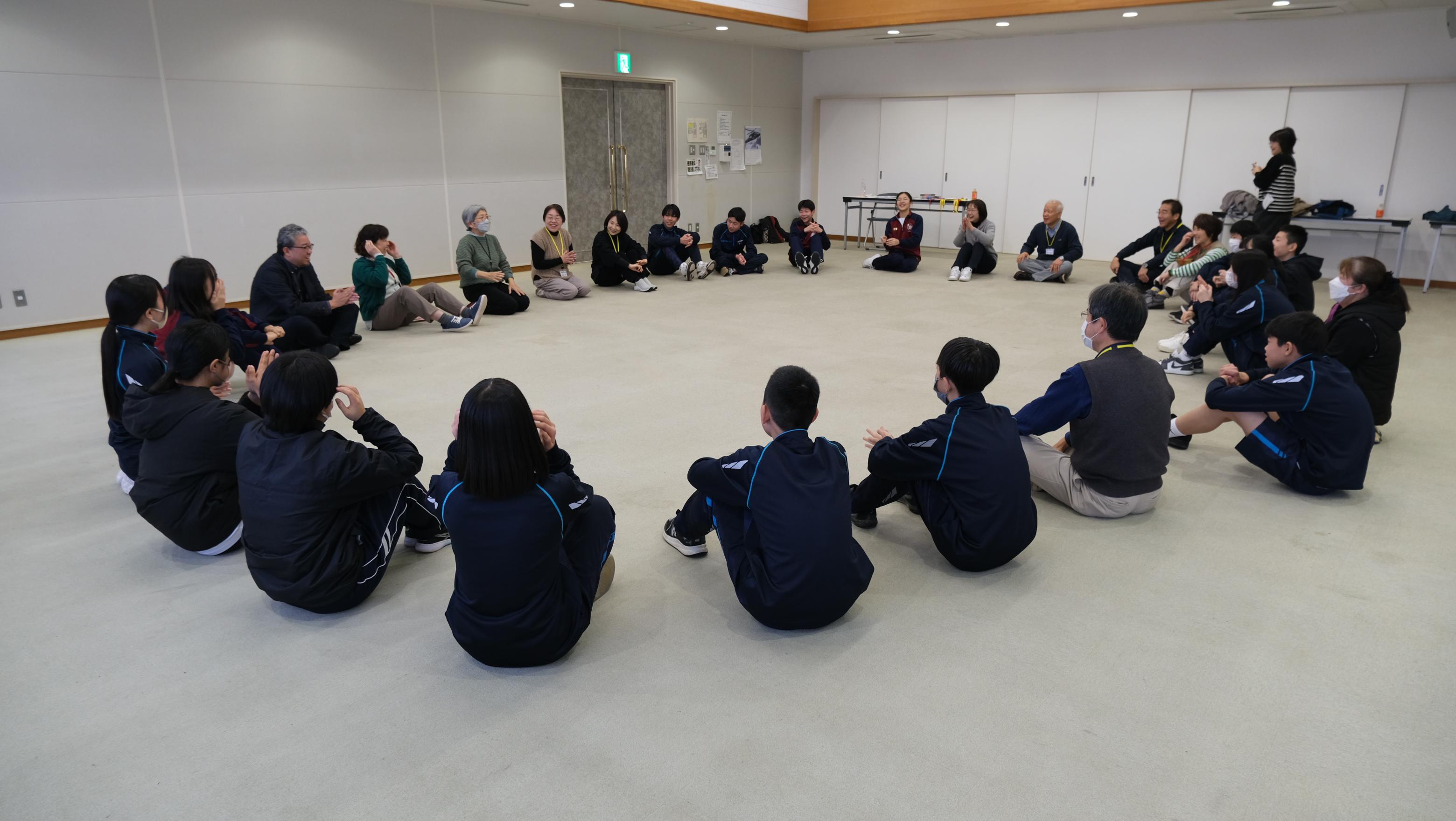 昨日(1/18)、八雲公民館を会場に、八雲・東出雲地域リーダー合同研修会が開催され、新生徒会役員が参加しました。この研修会は、生徒会および地域の青少年リーダーとしての心構えと技能を身につけ、意欲と実践力を高めることを目的に、冬と夏に開催されています。まずはじめに、オリエンテーションがあり、次にコミュニケーションワークショップが行われました。しいの実シアターの有田さんにコミュニケーションの大切さについて、体と頭を使いながら体験しながら教えていただきました。