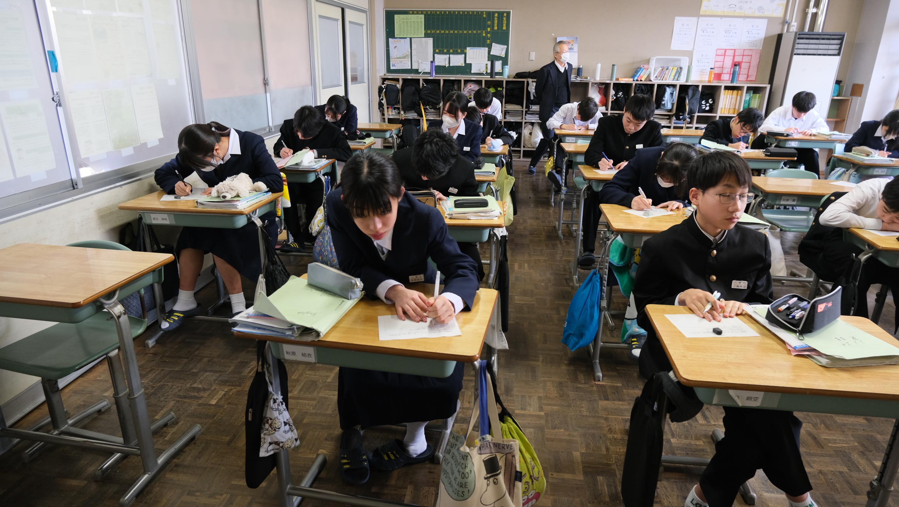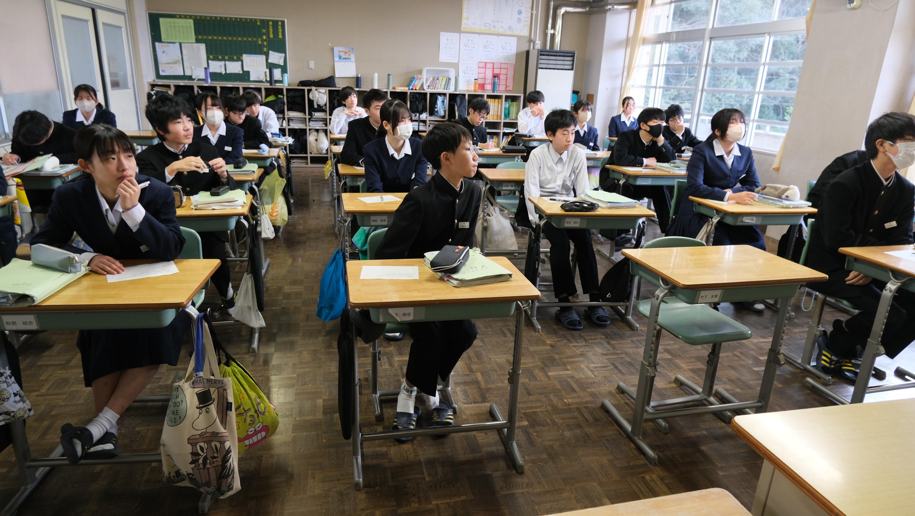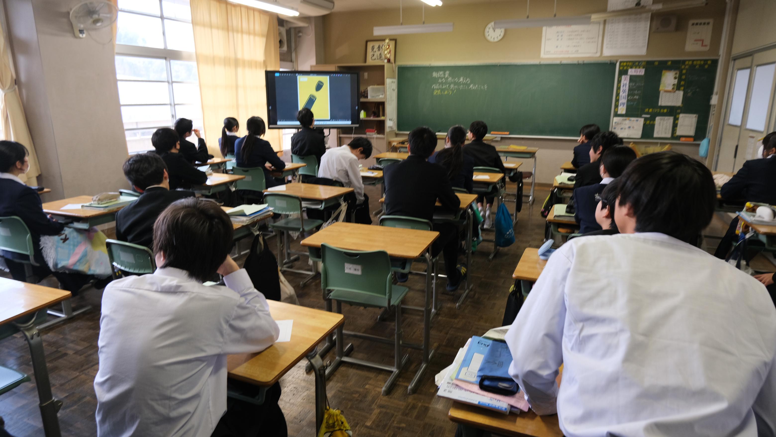 昨日は3年生、今日は2年生で「朝鑑賞」が行われました。「朝鑑賞」は朝礼前の10分間を使って絵画作品をみて、気づいたことや感じたこと、考えたことを話し合う対話鑑賞の取組です。2学期にオリエンテーションをしてから、3学期にやっと実施することができました。短い時間でしたが、「この作品のよさや美しさはなにか?」一人一人が一生懸命考えました。作品は、「福田繫雄」の「VICTORY」を鑑賞しました。この作品は国際ポスターコンクールで発表された作品で、大砲から発射された砲弾が、そのままUターンして帰ってくる様子をシンプルに描写した、戦争の愚かさと平和への願いを表現しているといわれています。作品の解説はしませんでしたが、生徒は「暴力」「戦争」「平和」などをイメージしていました。