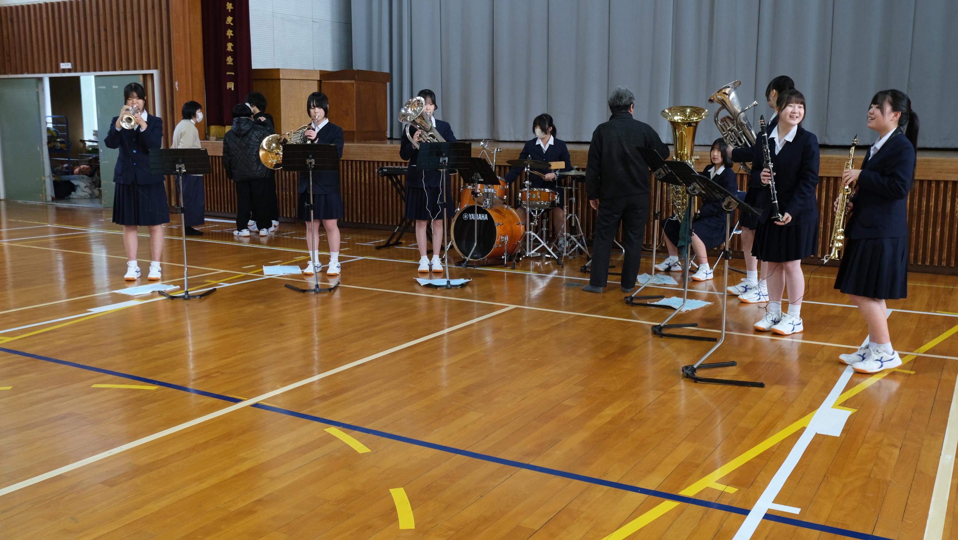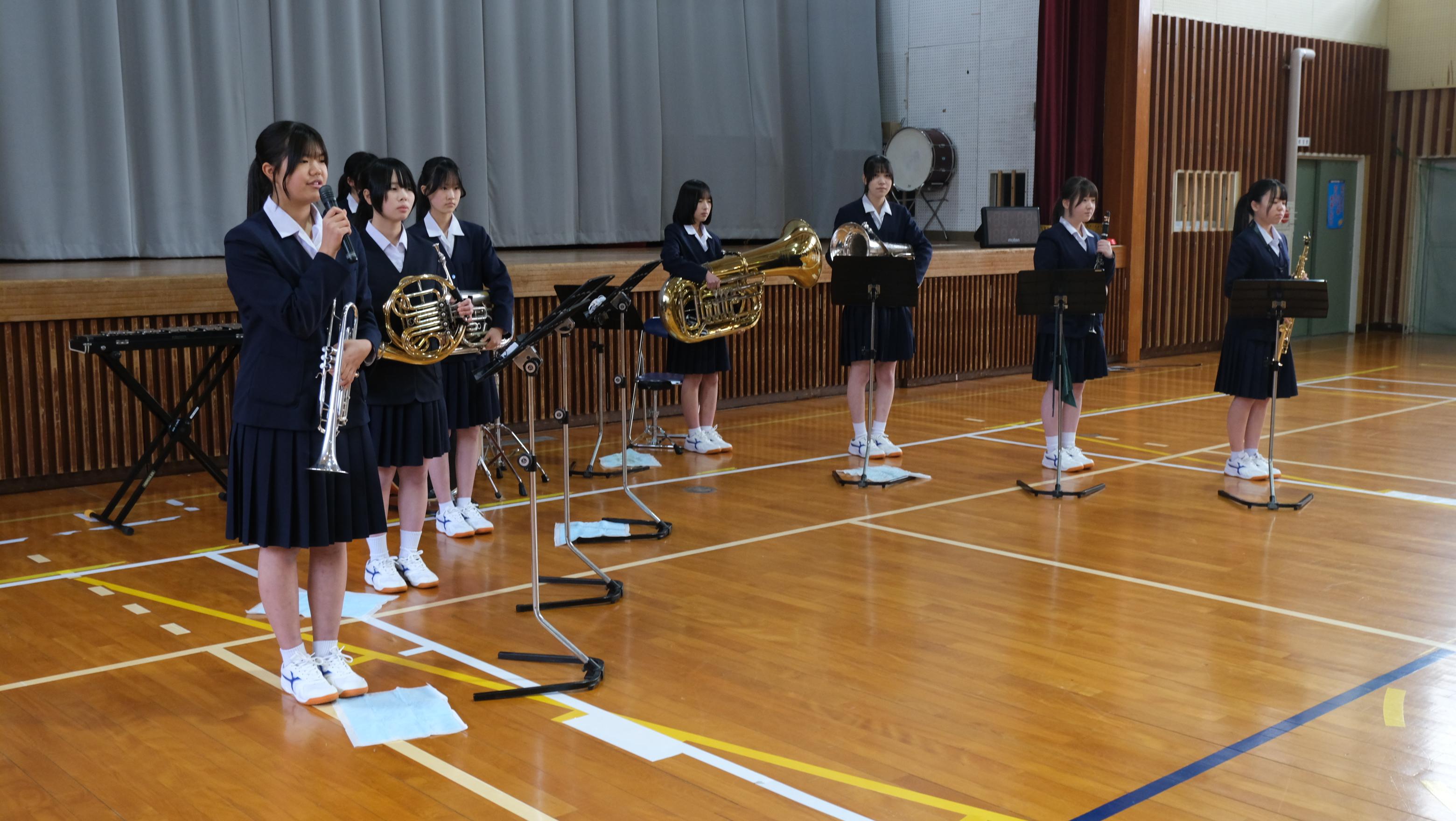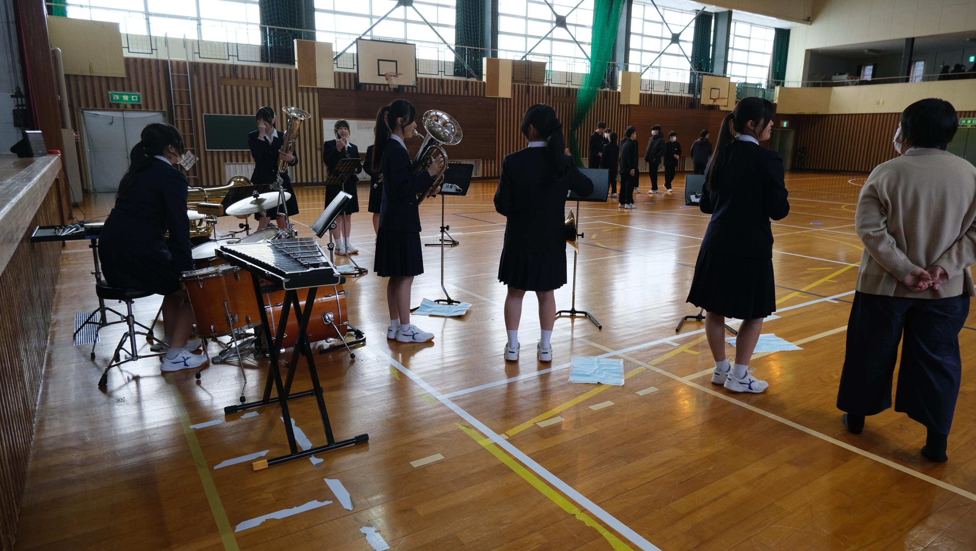 明日(2/7)から、倉敷市において、アンサンブルコンテスト中国大会が開催されます。八雲中学校は、島根県の代表として管打八重奏の編成で6番目に出演します。今日は壮行演奏会が行われました。生徒会代表の生徒が「音をきれいにまとめたり、勉強と両立させたりすることに苦労してきたと思います。それらを乗り越えたことは自信にしていいことだと思います。中国大会では、自分たちを信じて、全力で演奏してよい賞がとれるように頑張ってください。応援しています。」とエールを送ってくれました。