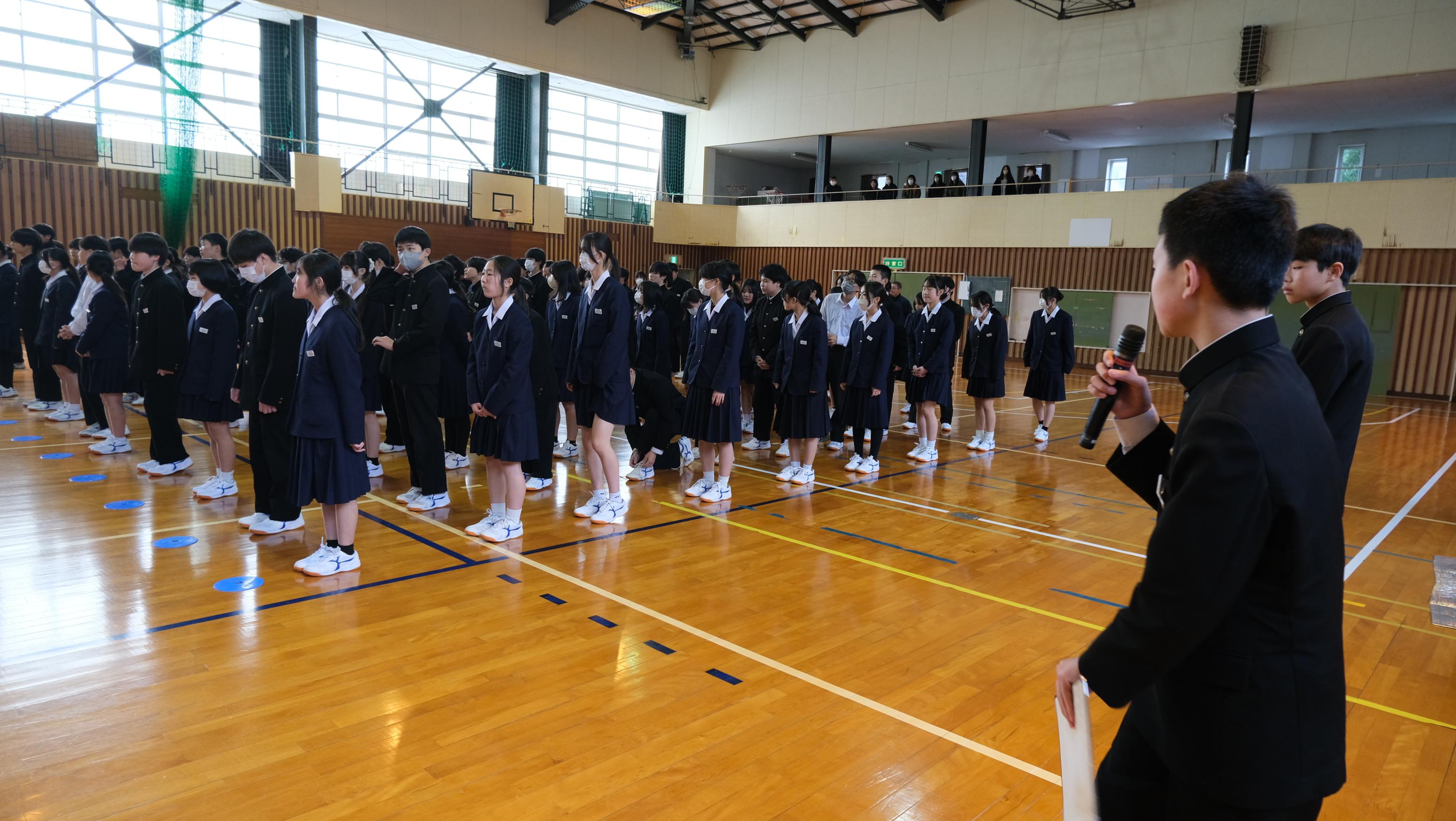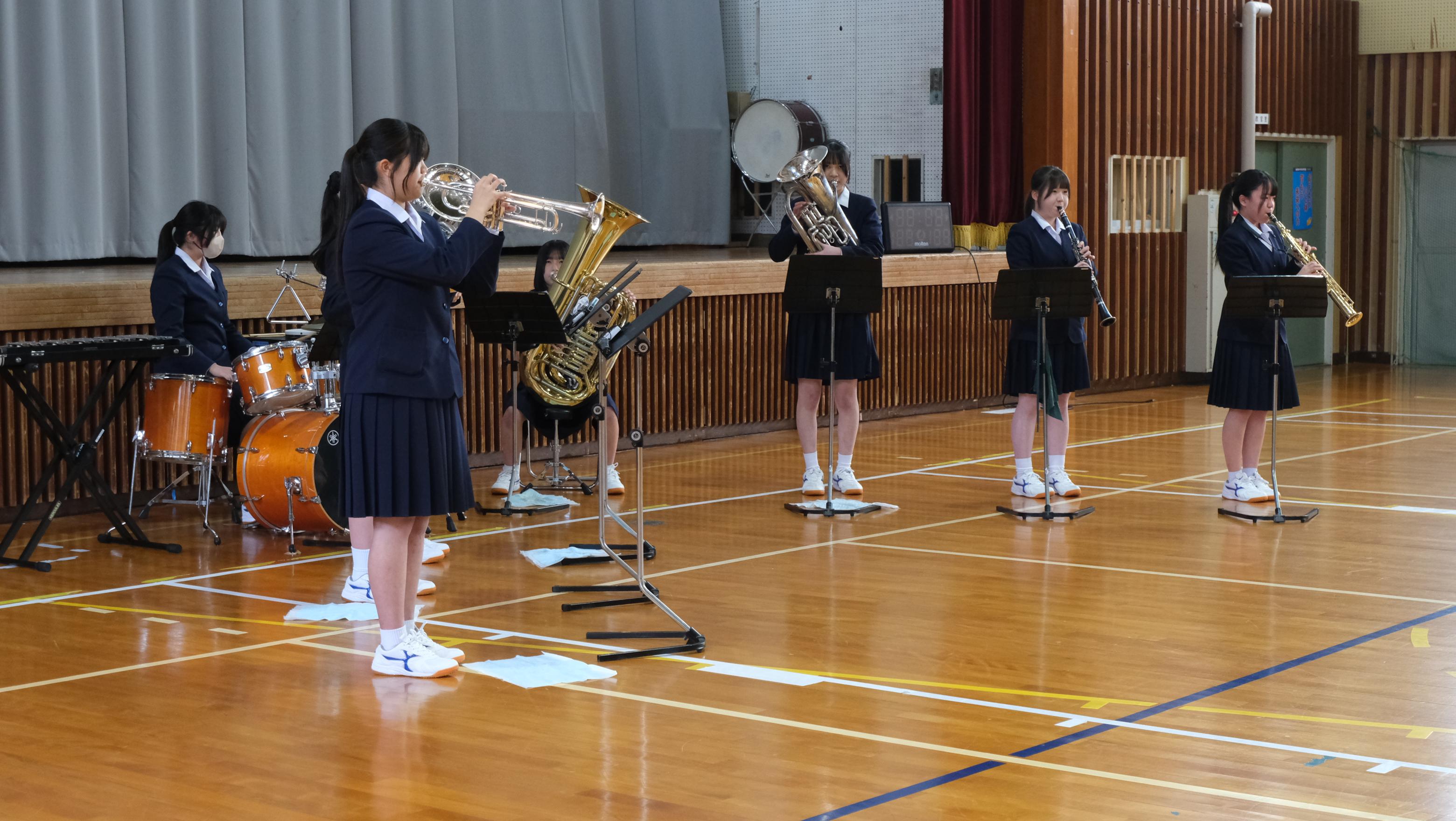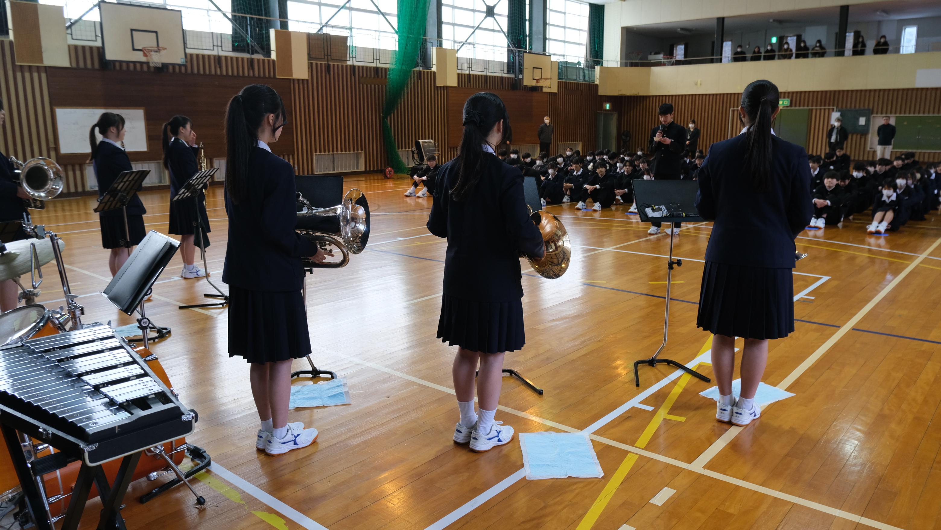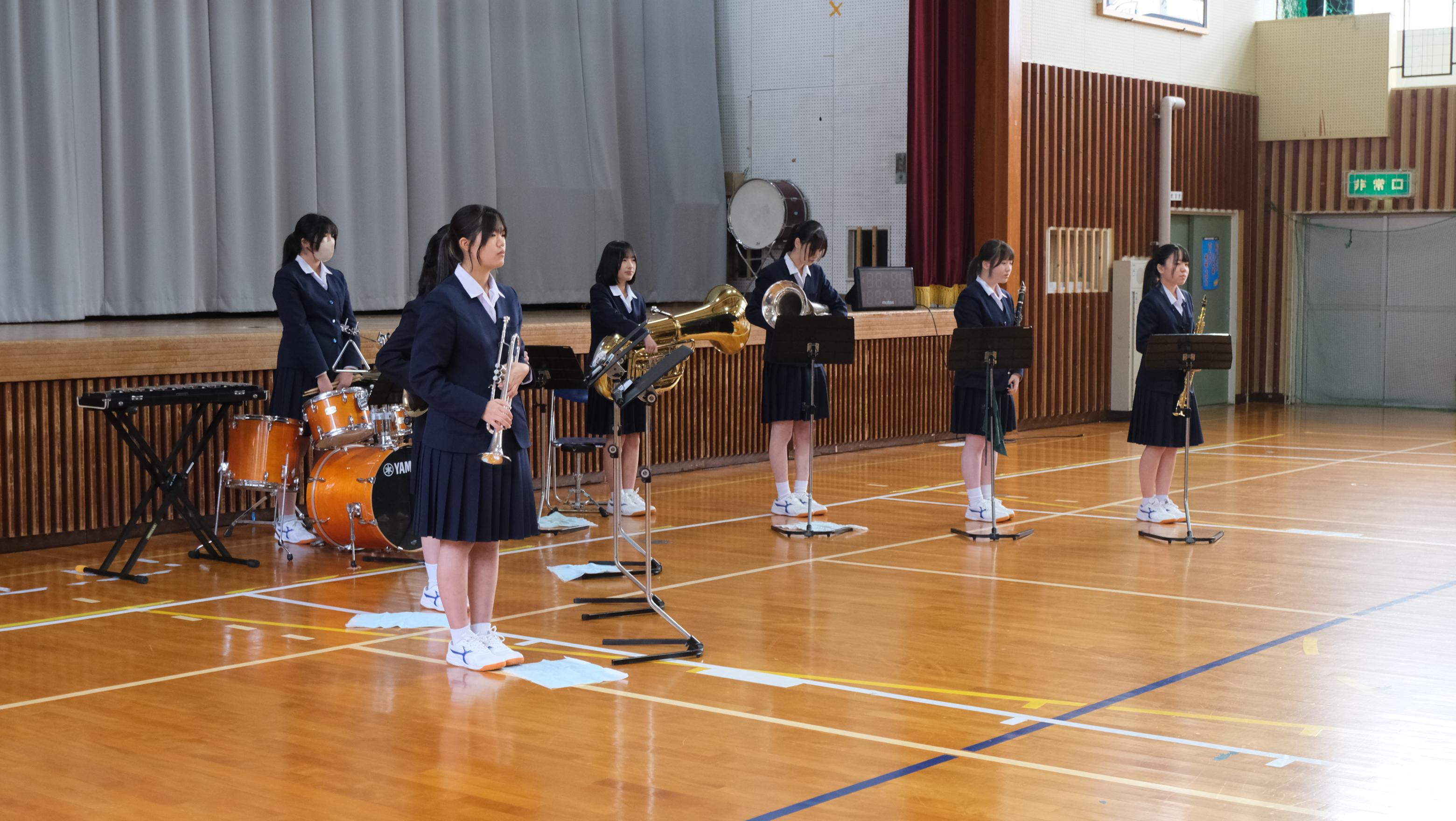 明日(2/7)から、倉敷市において、アンサンブルコンテスト中国大会が開催されます。八雲中学校は、島根県の代表として管打八重奏の編成で6番目に出演します。今日は壮行演奏会が行われました。生徒会代表の生徒が「音をきれいにまとめたり、勉強と両立させたりすることに苦労してきたと思います。それらを乗り越えたことは自信にしていいことだと思います。中国大会では、自分たちを信じて、全力で演奏してよい賞がとれるように頑張ってください。応援しています。」とエールを送ってくれました。