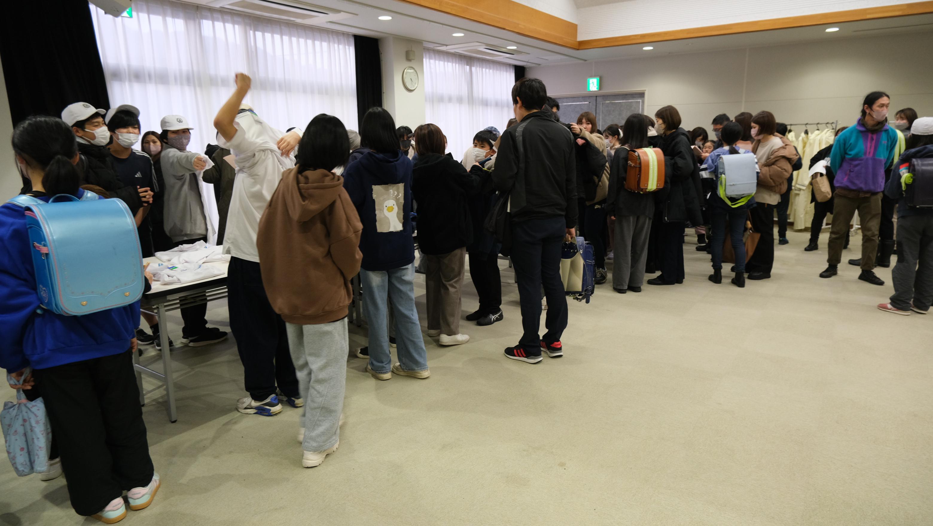 また、アルバホールでは、保護者説明会が行われ中学校の概要や学習、生活について説明を行いました。その後、物品販売があり、制服の採寸や体操服などの注文が行われました。小学生は私服で生活していますが、中学生になると制服で過ごします。はじめての制服購入となりますが、中学校3年間を見越して、少し大きめのサイズを注文していました。小学生に中学校の印象を尋ねたところ、「1年生教室が4階で驚きました。」と言っていました。4月からは八雲中学校の仲間として歓迎します。在校生一同楽しみにしています。