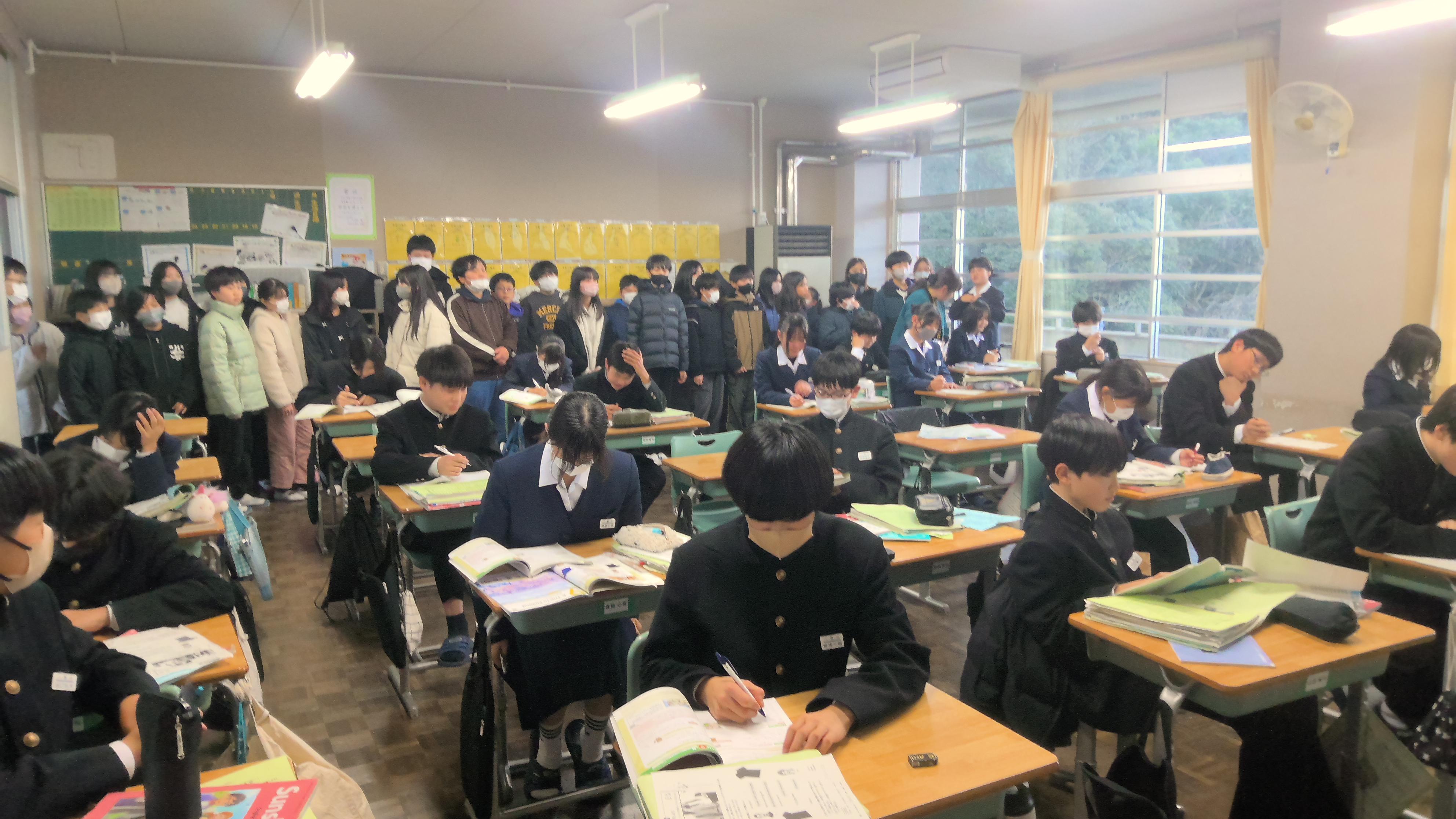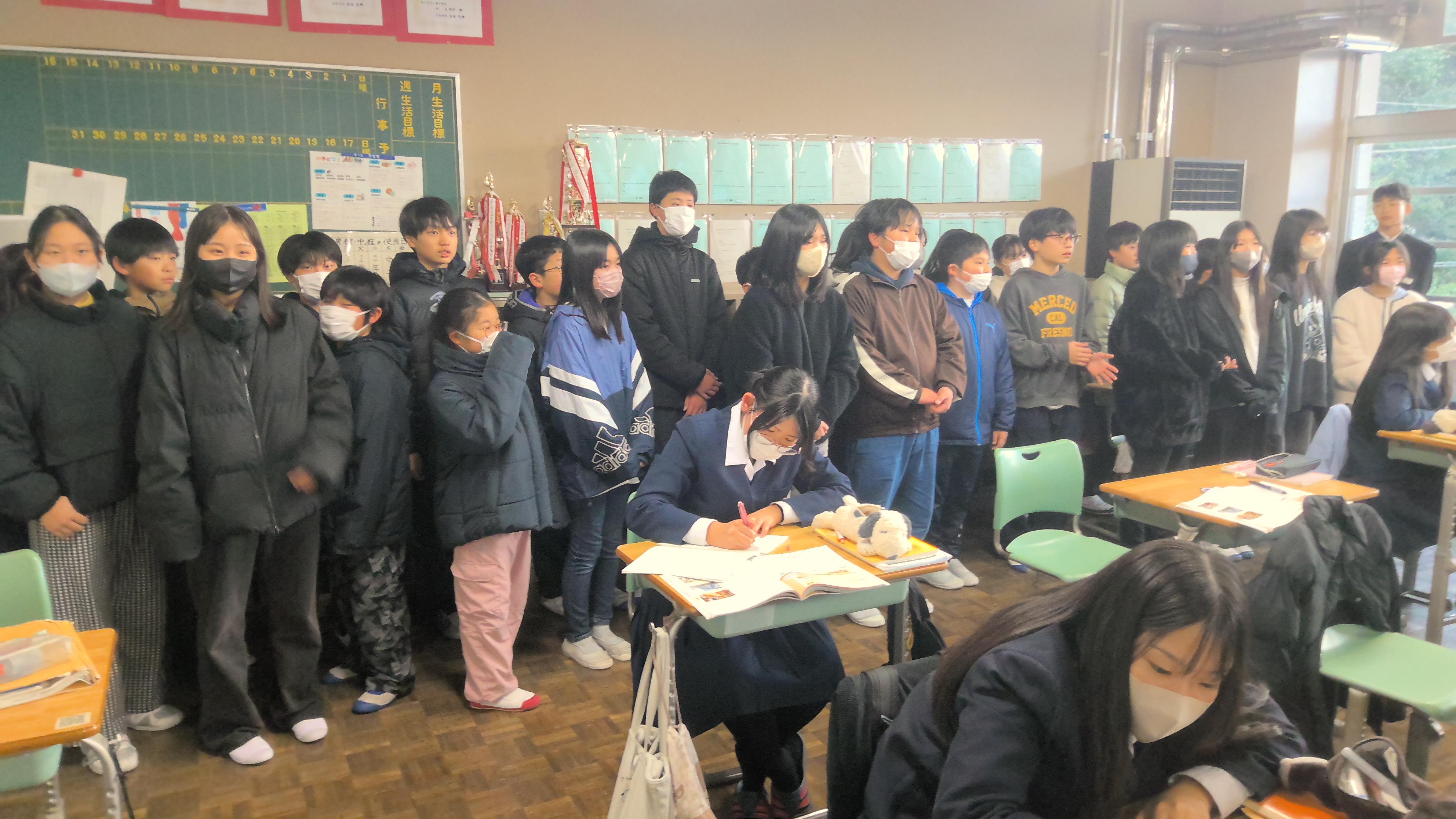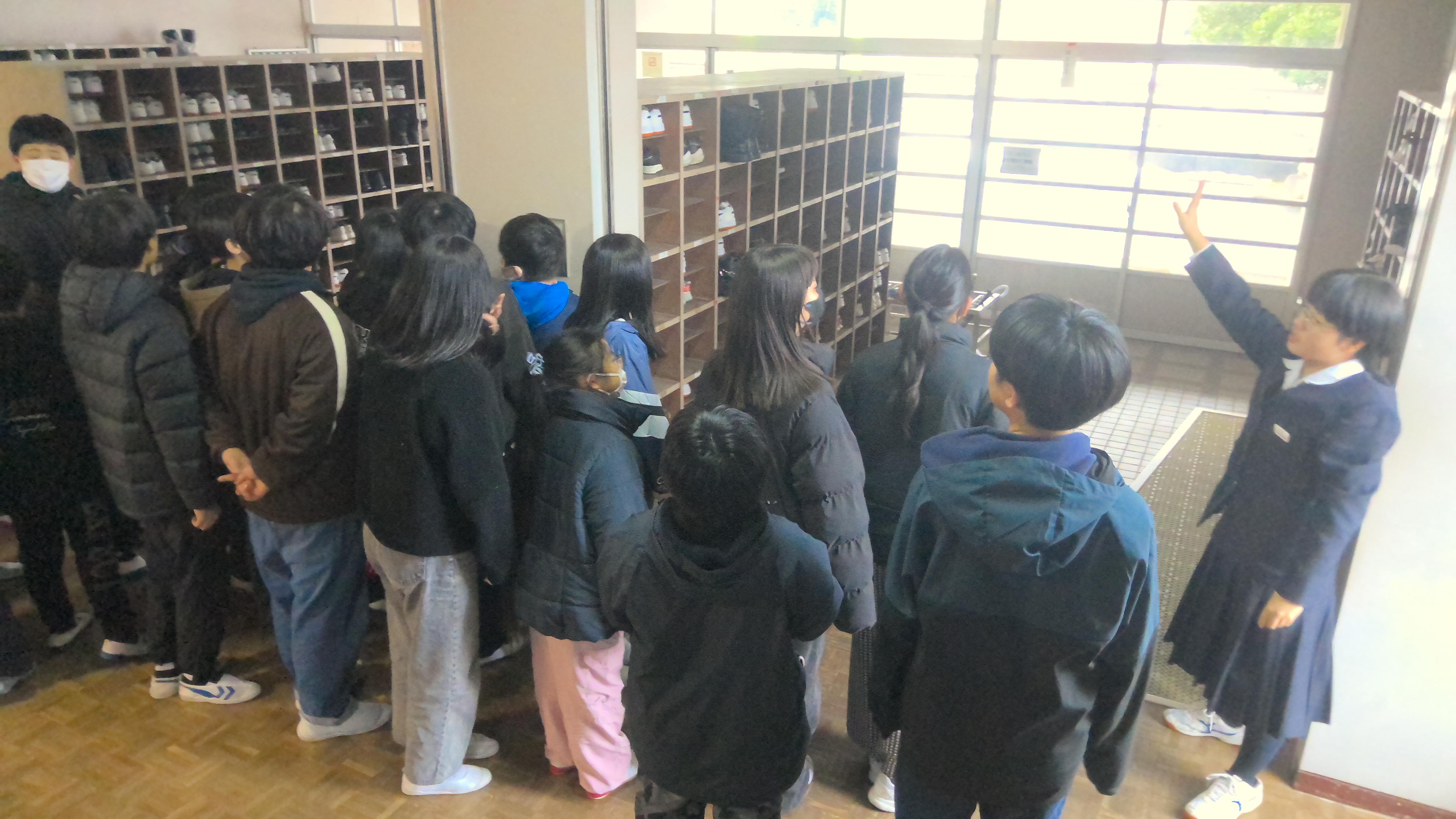 本日(2/12)は、新入生説明会および保護者説明会が行われました。小学生は、中学校の体育館にて、学校生活や授業について説明を受けました。また、生徒会のクイズにもこたえていました。体育館での説明のあとは、校舎や授業の様子を参観しました。案内は、生徒会のメンバーが引き受けてくれ、特別教室や実際の授業の様子を見ました。