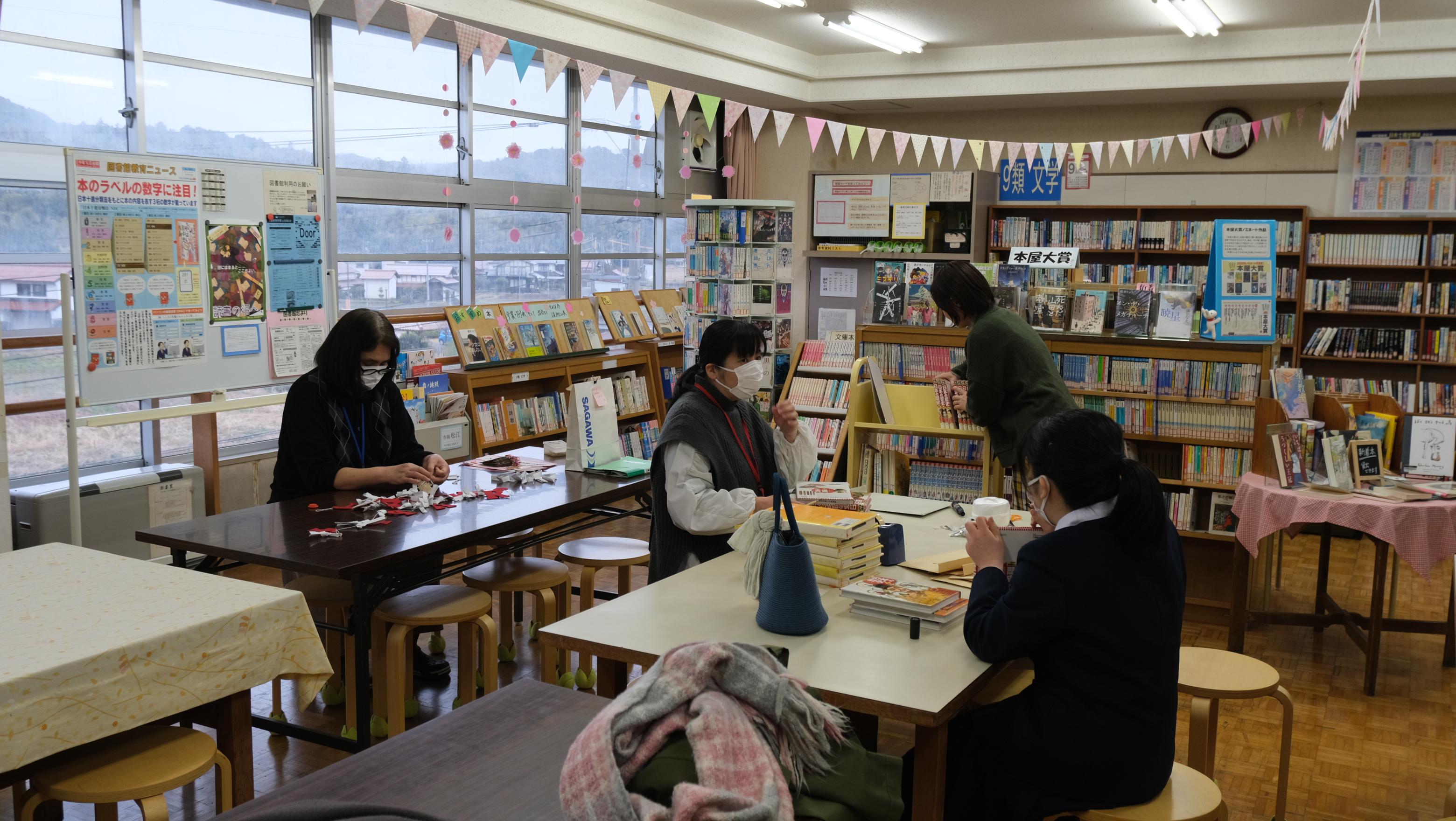 地域の方や保護者の方に参加いただいた図書館ボランティア活動は、昨日26日(木)をもって今年度の最終回を迎えました。今回は、卒業式に向けて春らしい飾りつけをしていただいた後、図書の廃棄作業に汗をかいてもらいました。作業後は、各種団体より寄付していただいた新書本を見ながら、和やかに話をされる様子が見られました。