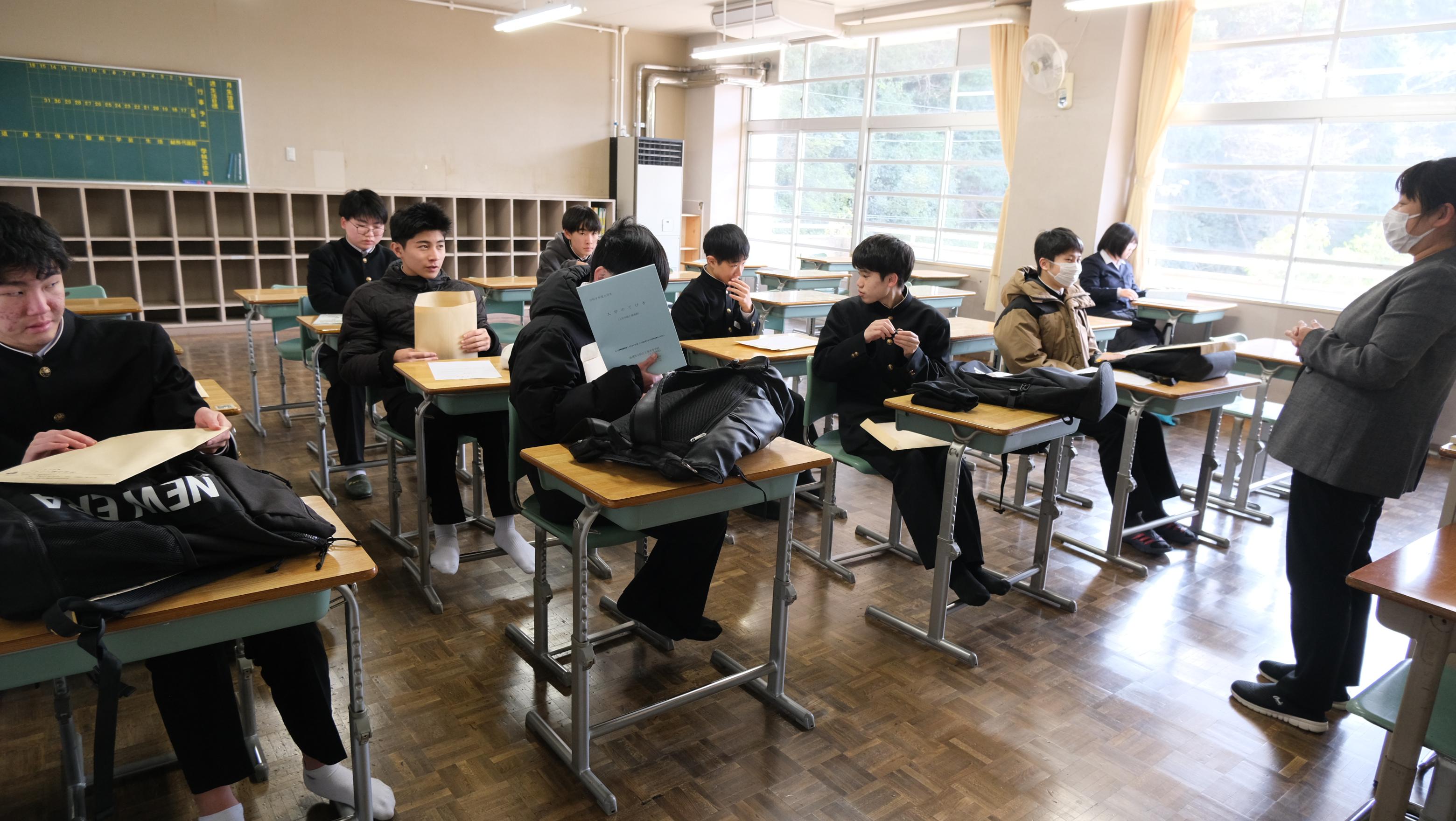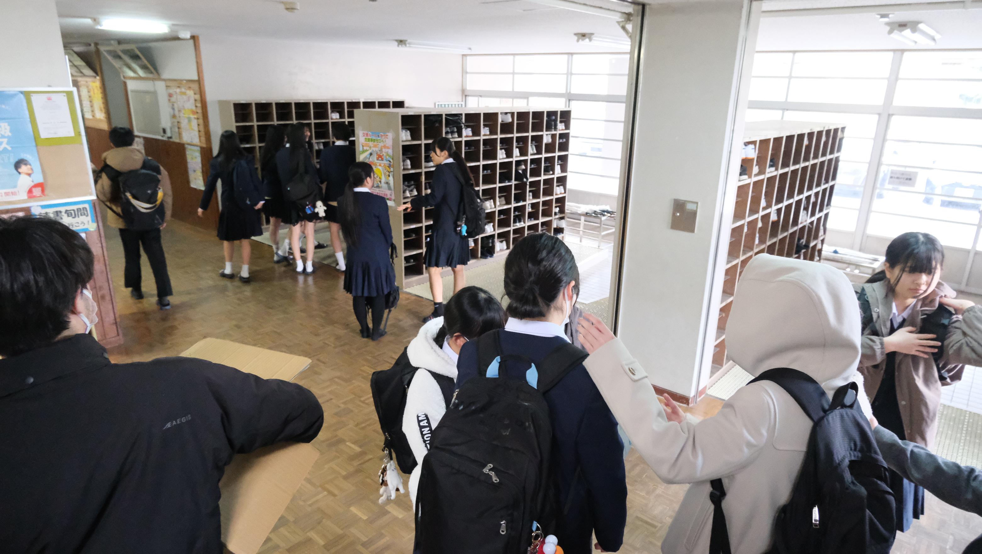 本日(3/13)は、公立高校合格発表の日でした。12時になると卒業生が次々と学校に登校し、学校別に合格通知を受け取っていました。そのあと、入学の手続きについて説明をうけました。生徒は、互いに「おめでとう!」と声を掛け合い、4月からはじまる新しい生活について話をしていました。