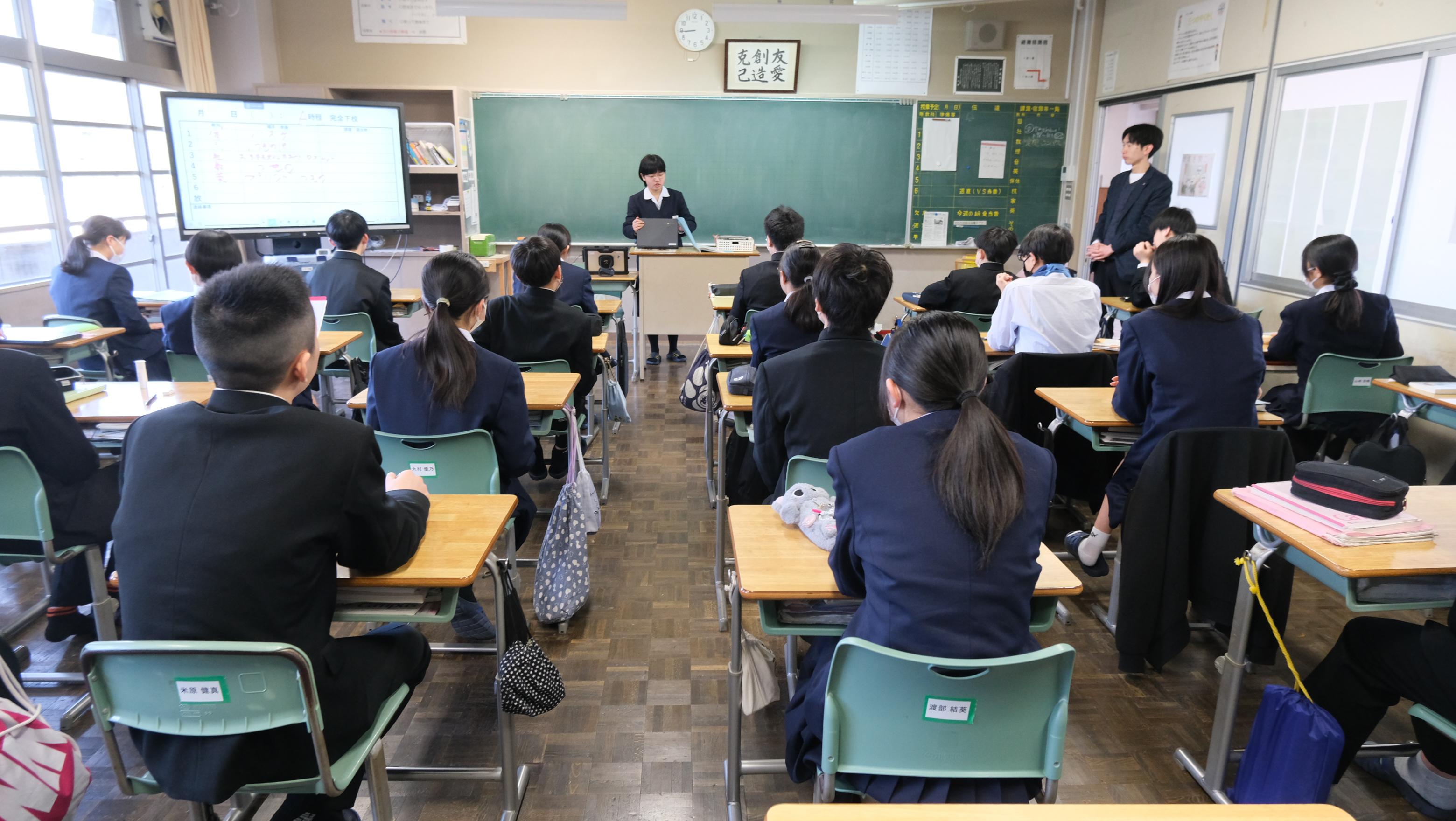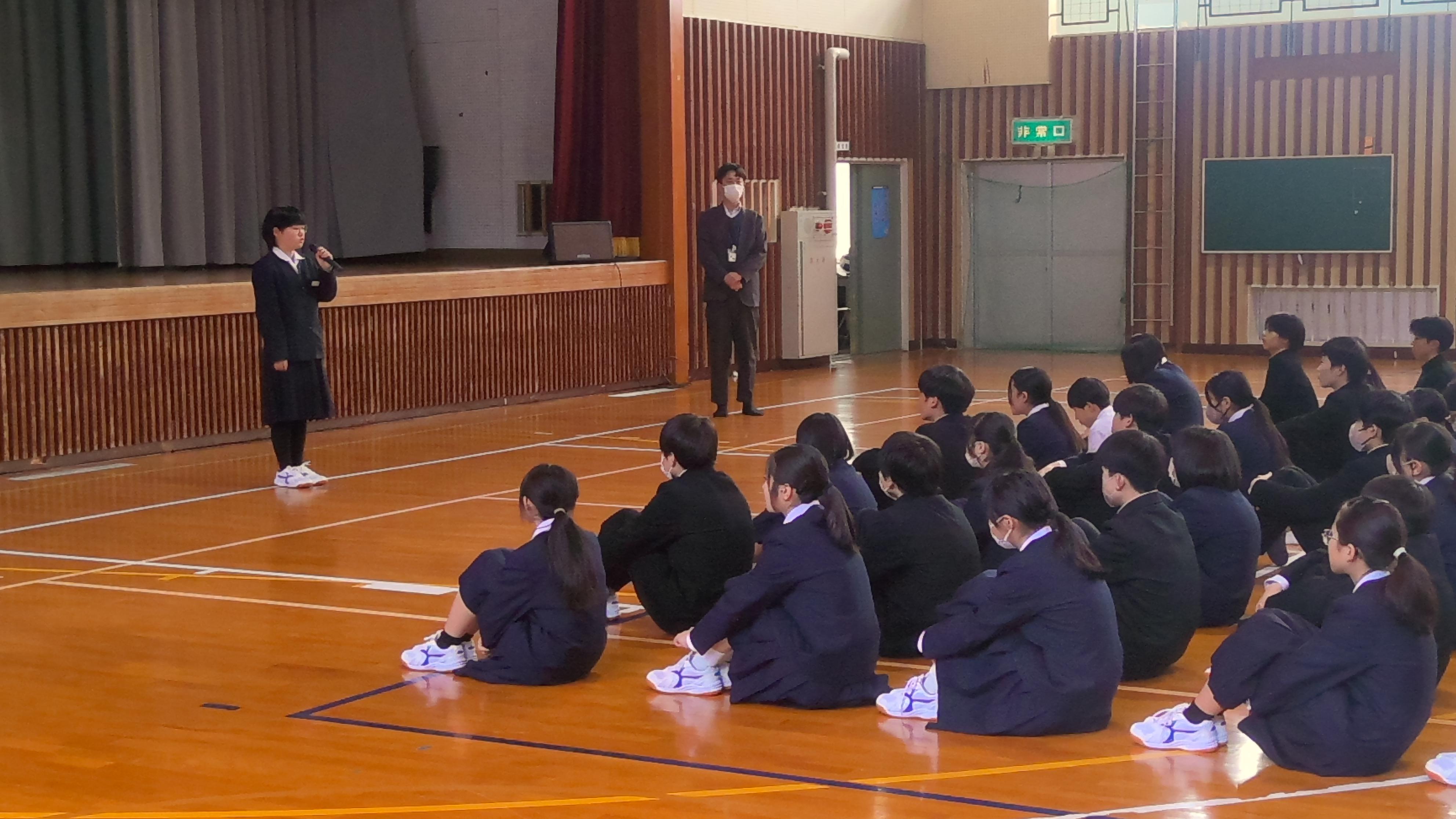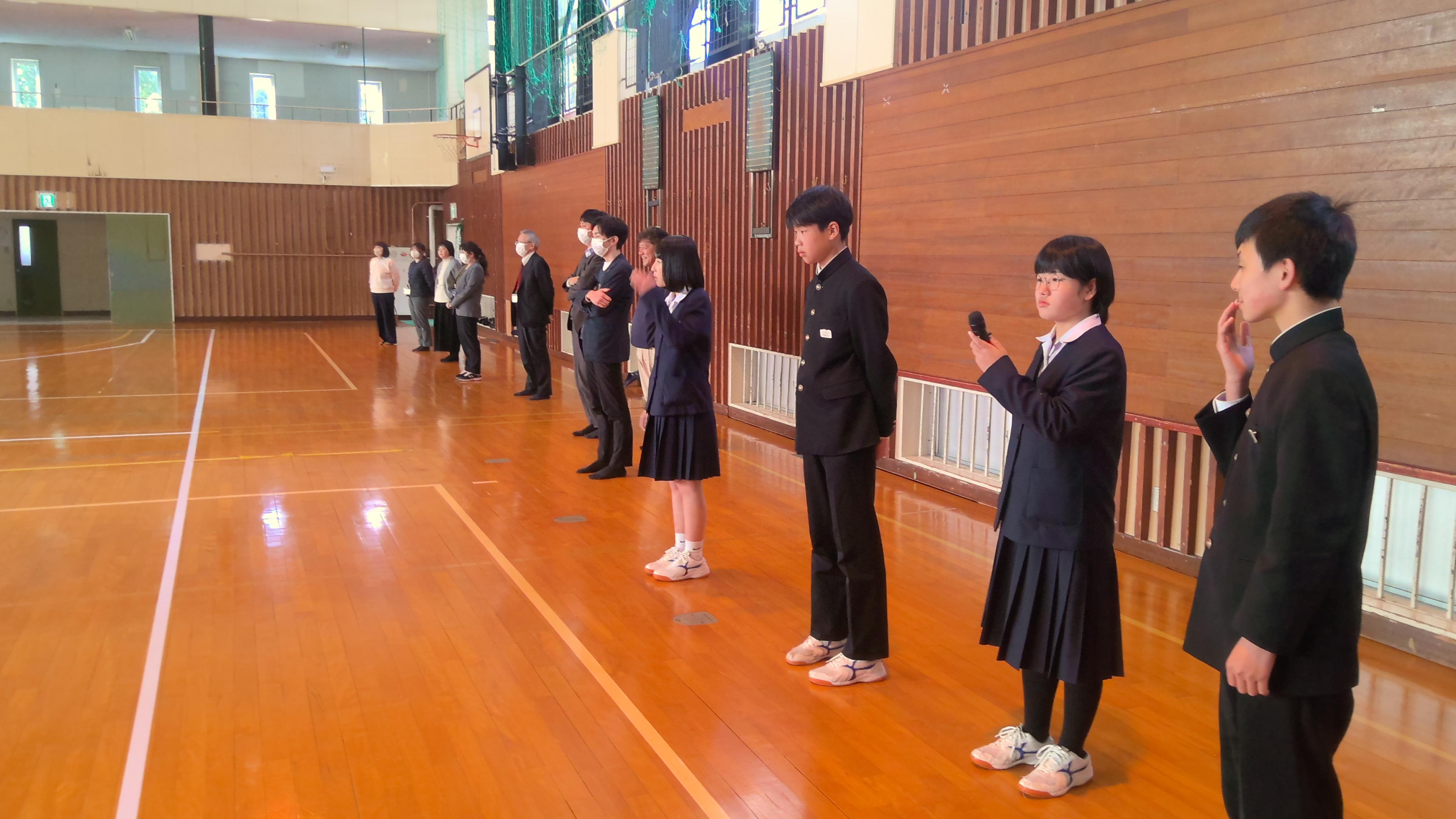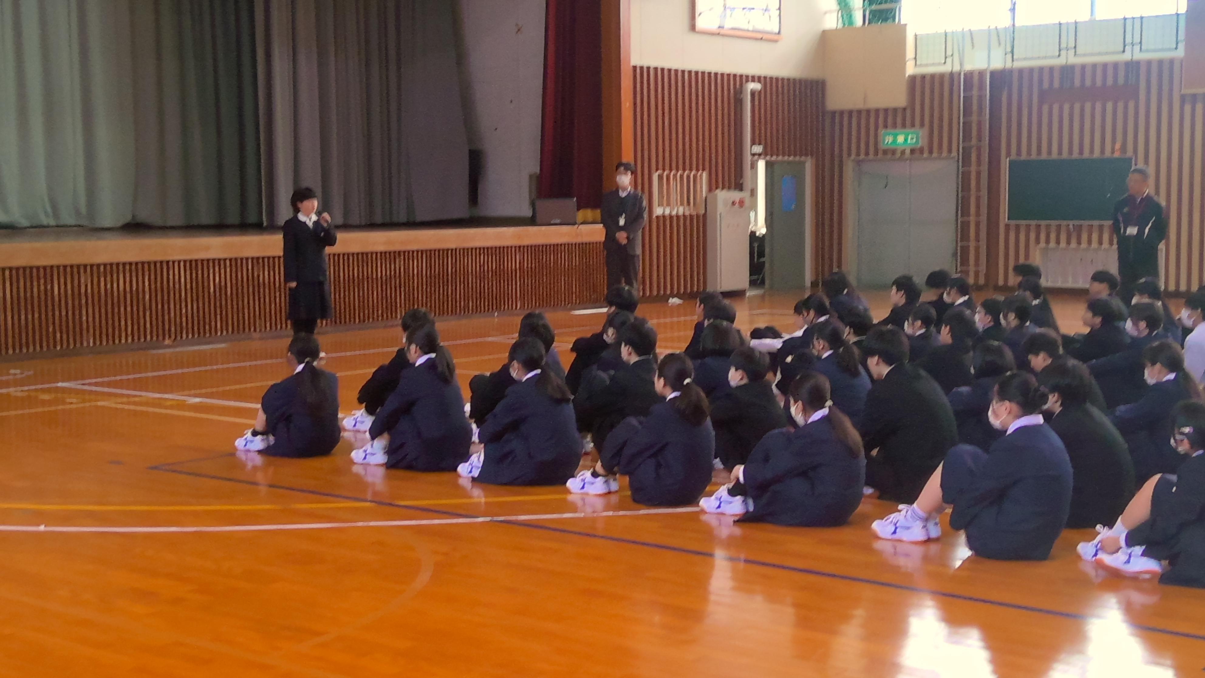 先週(3/13)に行われた全校集会で、生徒会長より今週は生徒会チャレンジ週間と告知がありました。生徒会は「共創」を実現するために~独自の色で輝く八雲中~の取組を進めています。自分の個性を知るために今日から「ポカポカTIME]に取り組みます。朝礼時に生徒会執行部より説明がありました。「ポカポカTIME]は、頑張っていたことや、人知れず努力していた姿に光をあてて、みんなに紹介する活動です。また明日は、ノーチャイムと掃除なしの取組を行います。