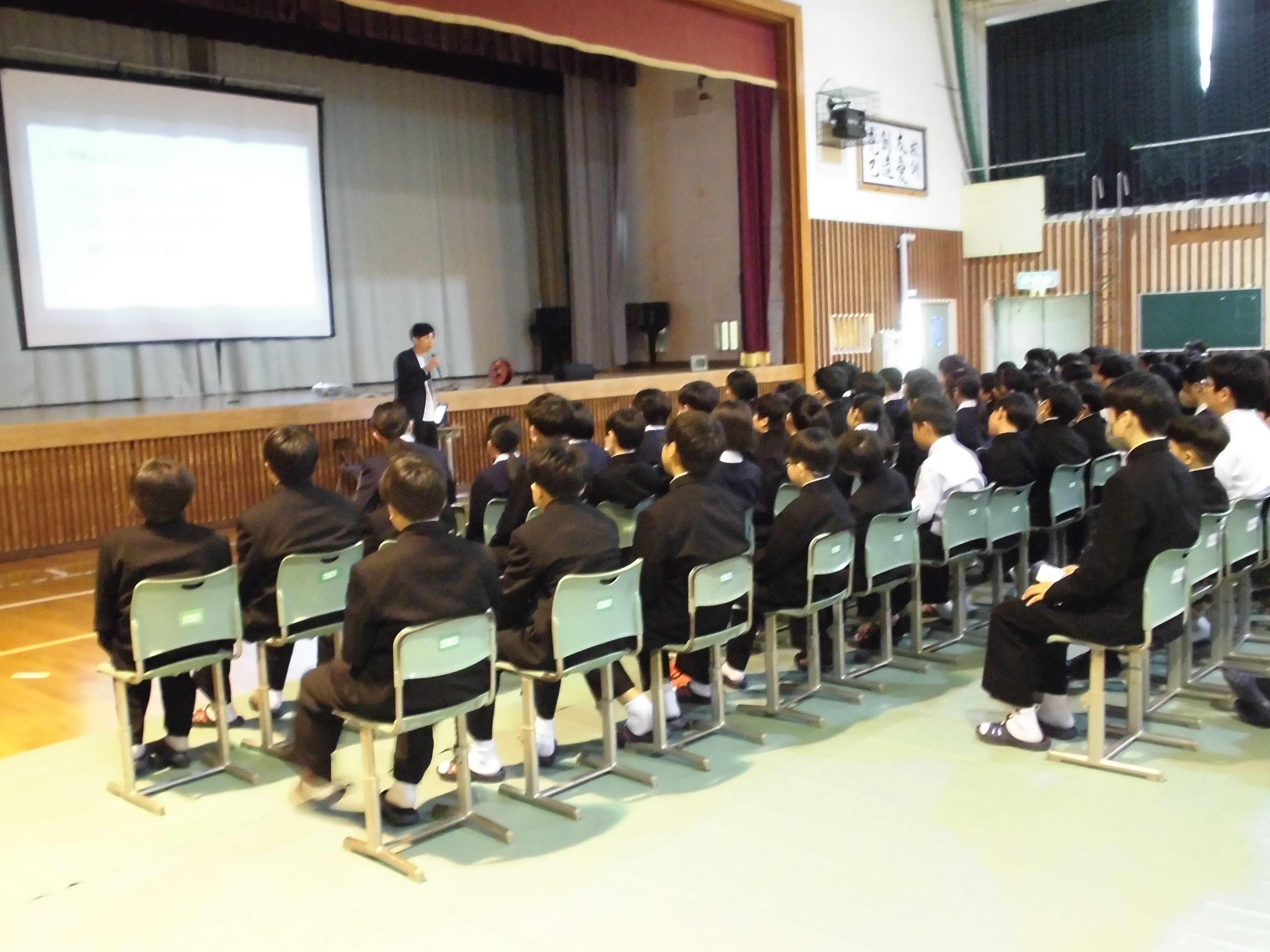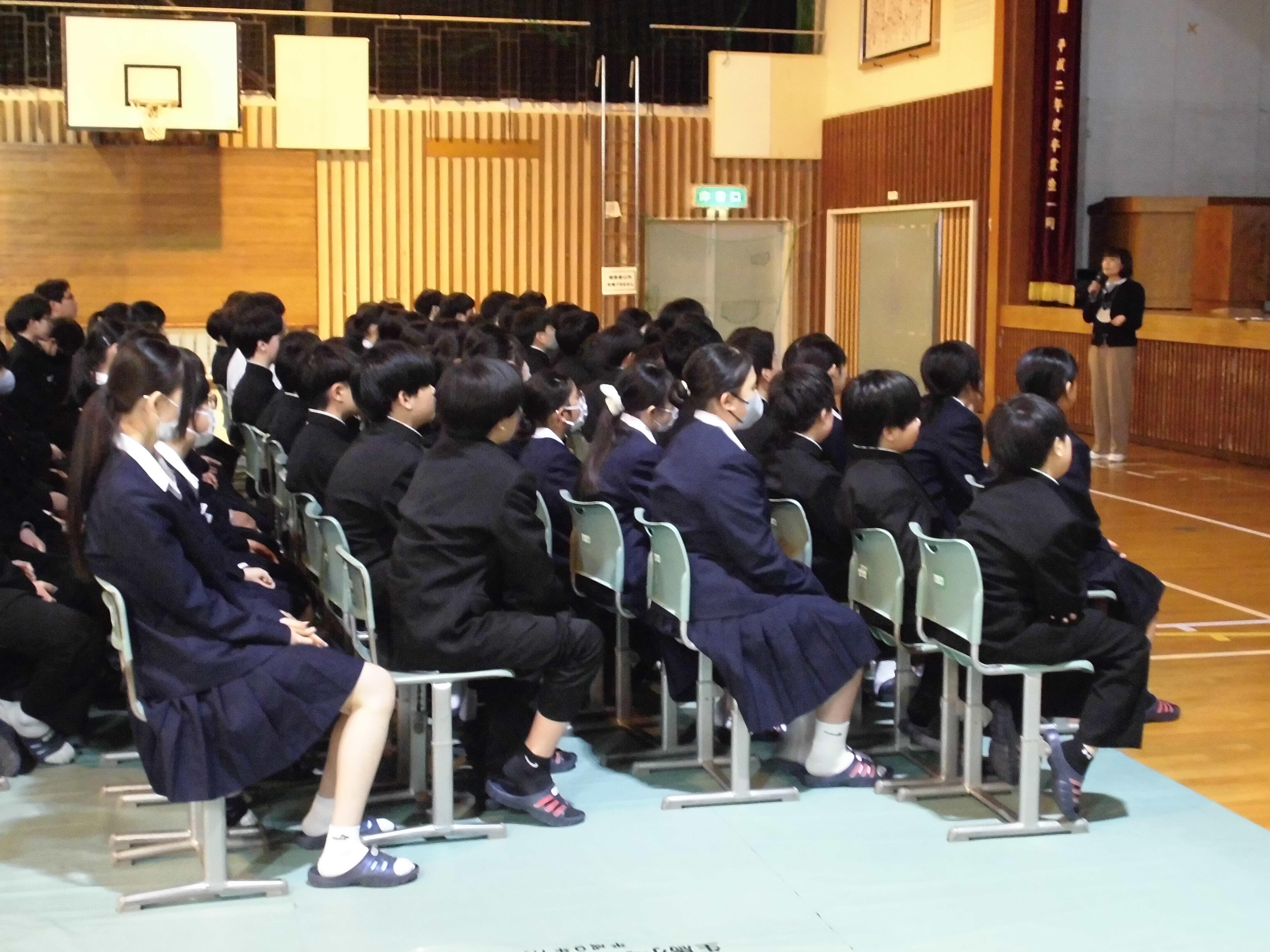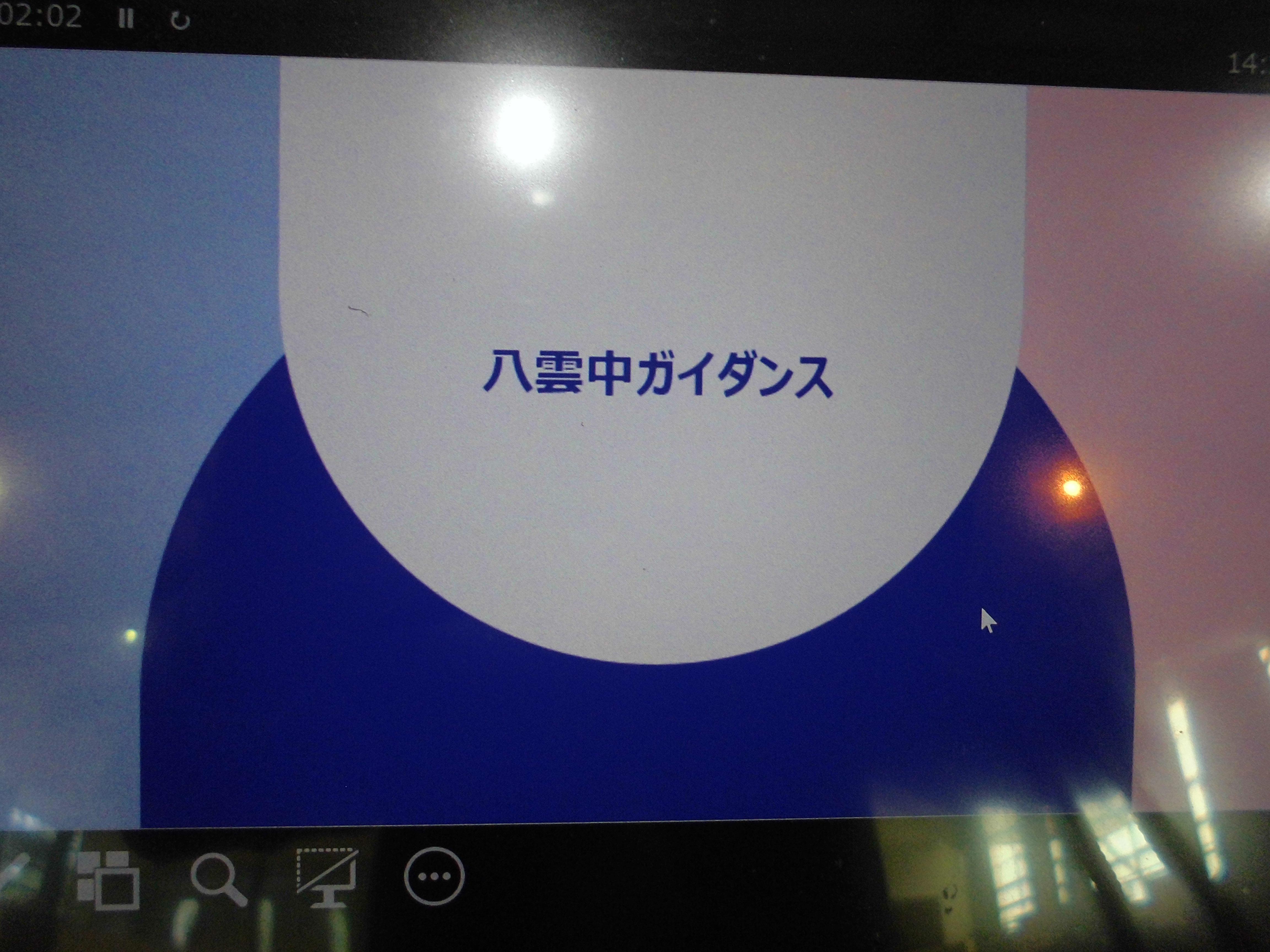 4月13日6校時、「八雲中ガイダンス」を行いました。このガイダンスは、八雲中学校での学習面や生活面での取り組みやきまりについて生徒、教職員全員で確認することで、「誰にとっても学校生活がよりよいものとなる」ことを目的としたものです。授業の受け方、家庭学習、タブレット活用、生活全般、給食、清掃など、みんなで一緒にめざすべき方向性を確認することができました。