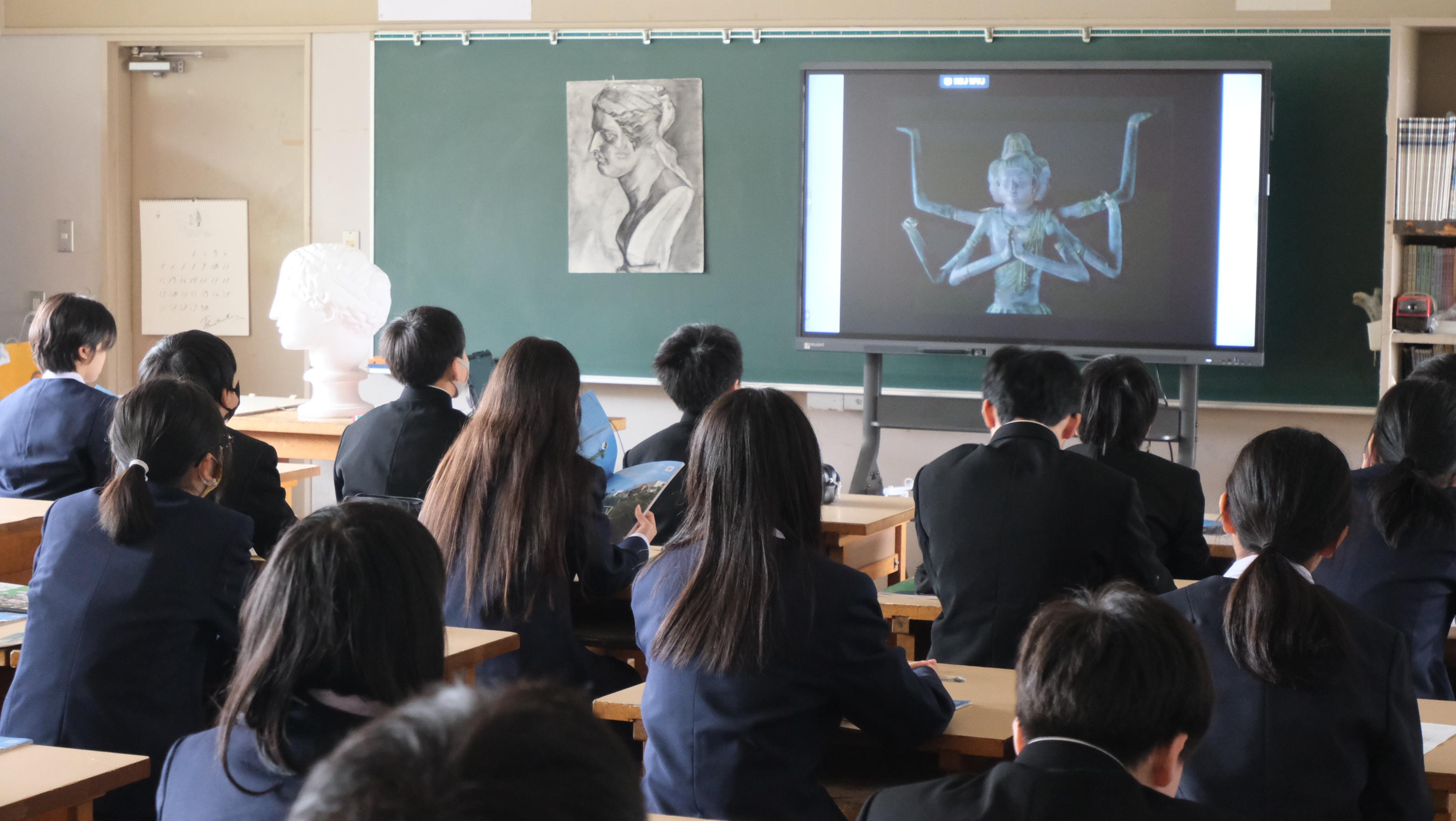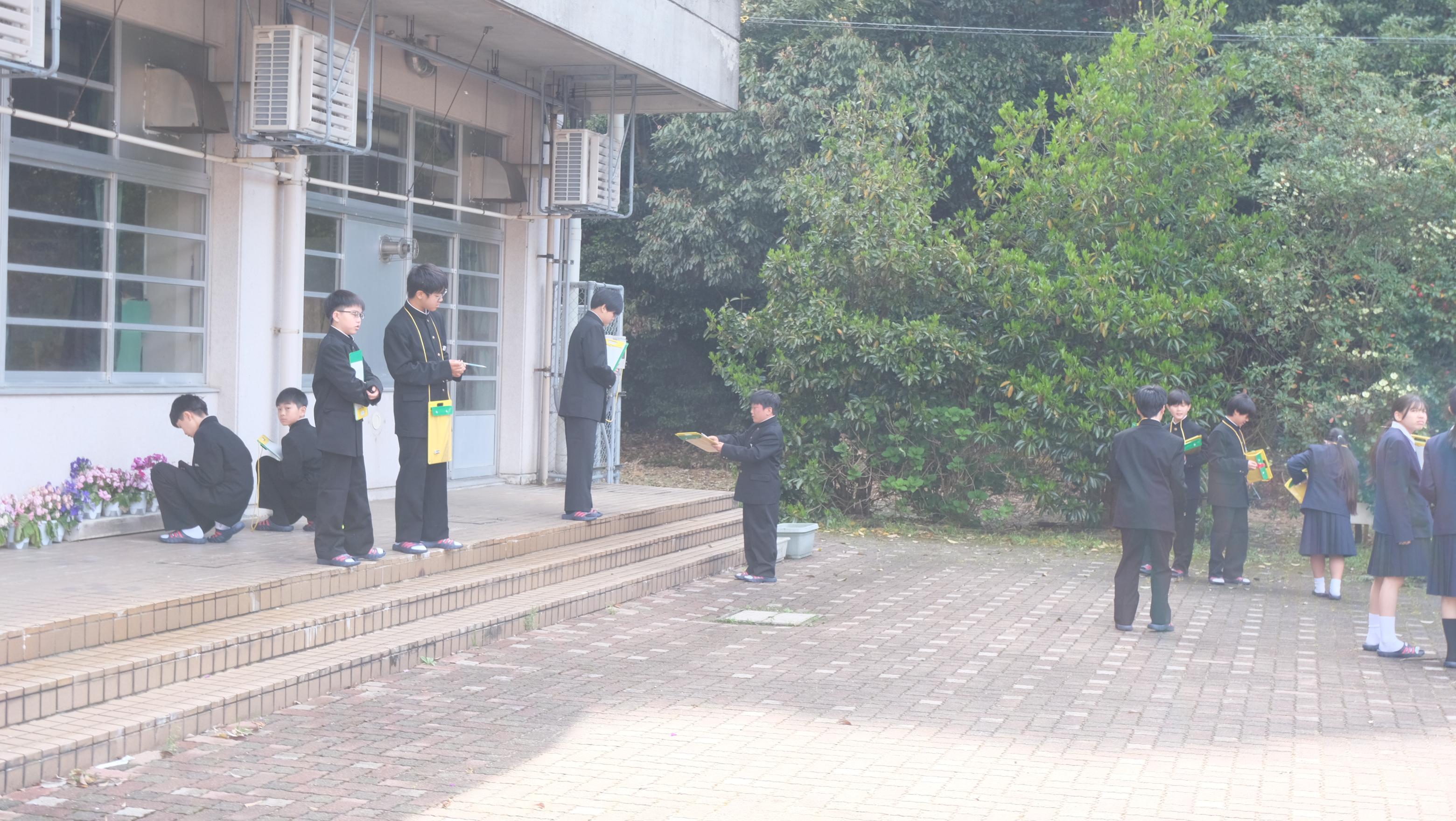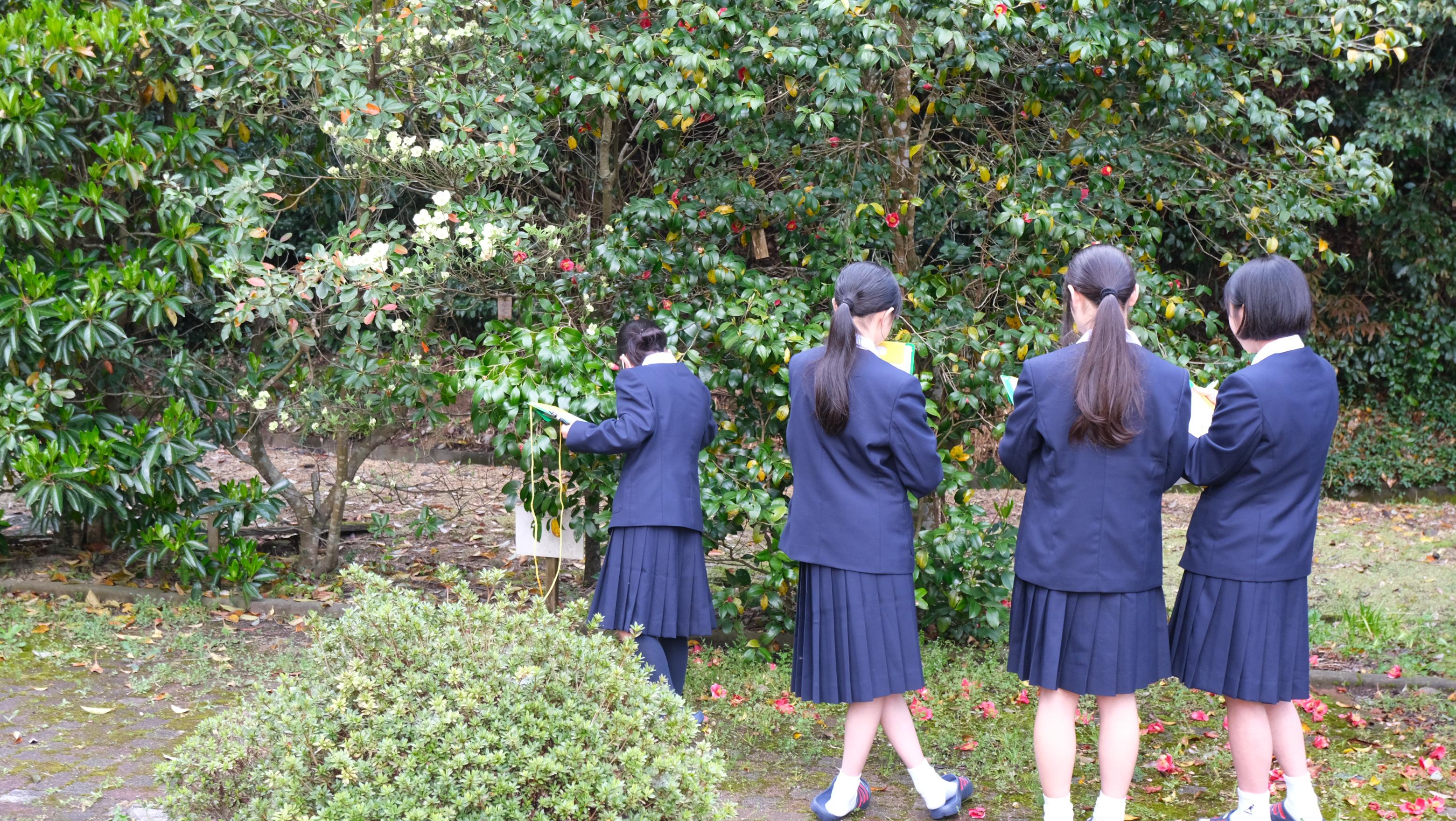 4月も第3週となり、さまざまな教科で授業開きが行われています。美術では、オリエンテーションとして「なぜ美術を学ぶのか?」について考えました。谷川俊太郎さんの「うつくしい!」の朗読を映像と音声で視聴し、それぞれが感じている「うつくしい!」についてワークシートに書いていました。また理科の授業では、中庭に出て植物をスケッチしています。中庭に咲いている椿やハナミズキ、プランターに植えてあるパンジーなどを熱心に観察していました。