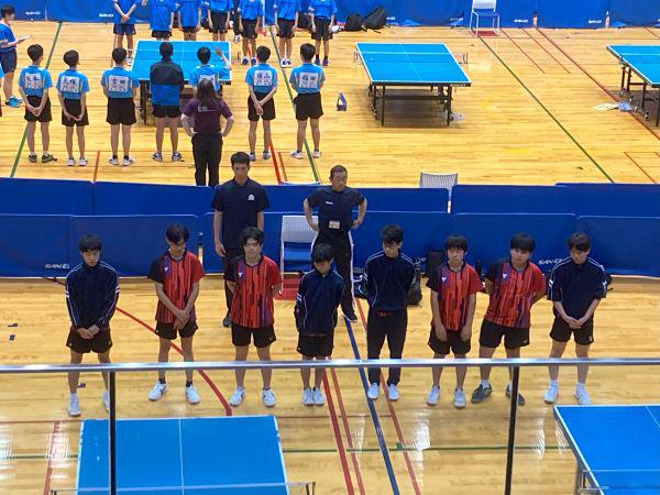 松江ブロック大会1日目、松江市総合体育館にて卓球競技が開催されました。キャプテンが選手宣誓の大役を立派に終え、まず本日は男子団体戦です。予選リーグ初戦は湖北中に3-0で勝利、2戦目は松江三中に0-3で惜敗し、Bゾーン2位で決勝トーナメントに進出しました。つづく決勝トーナメント1回戦は松江四中と対戦し、みなさん大変善戦しましたが1-3で惜敗。しかし、最後まであきらめず戦い抜きました。明日の個人戦、活躍を期待します。