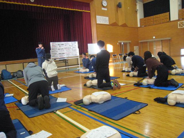 先日後期ブロックの学園生が行いましたが、今日は放課後に教職員の救急救命法の研修を行いました。胸骨圧迫とAEDの使用法について、消防署のスタッフの方から指導を受け、ダミー人形を使って訓練しました。いざという時に対応できるようみんな真剣そのものです。ちなみに八束学園のAEDは両体育館の入り口2か所に設置してあります。